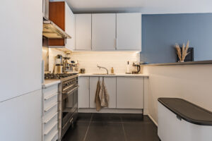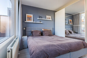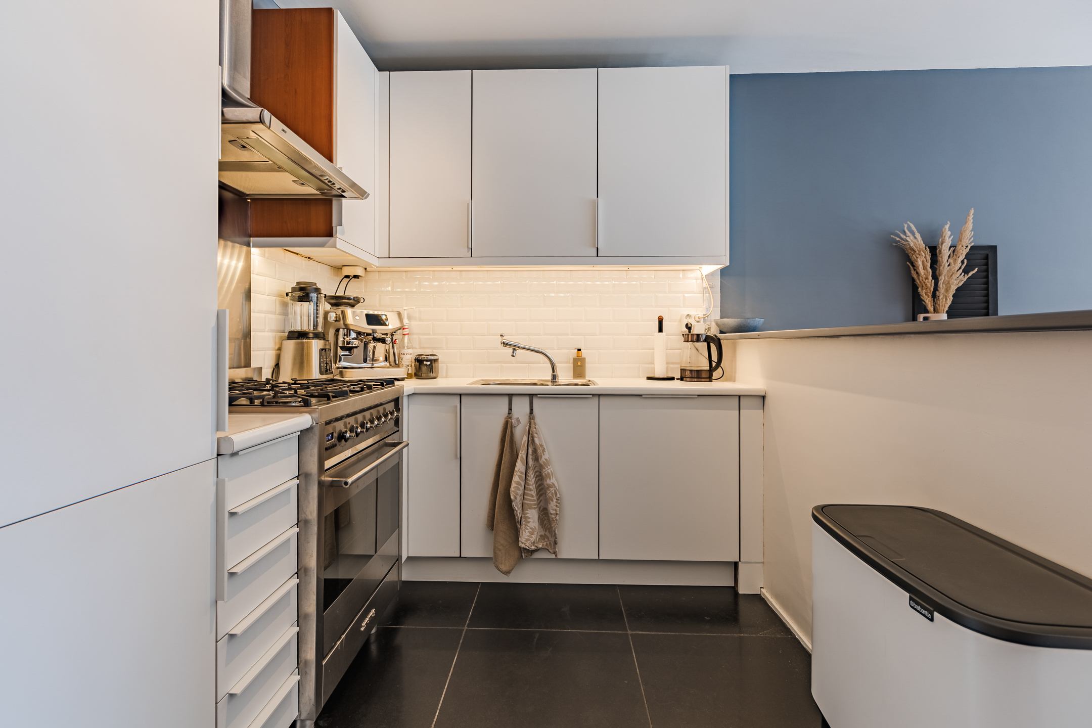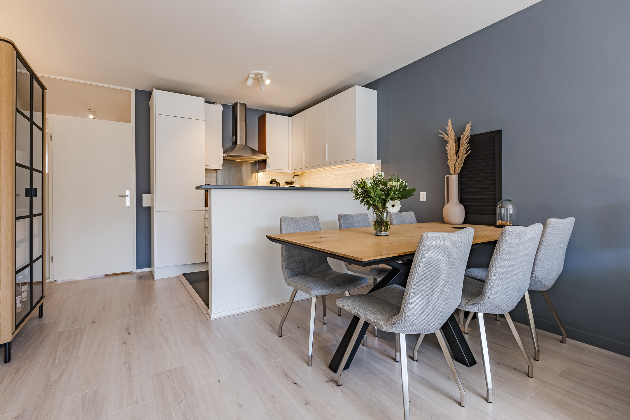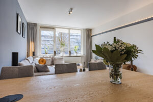 - Het appartement is met uitzondering van de slaapkamer en het sanitair voorzien van een fraaie laminaatvloer.