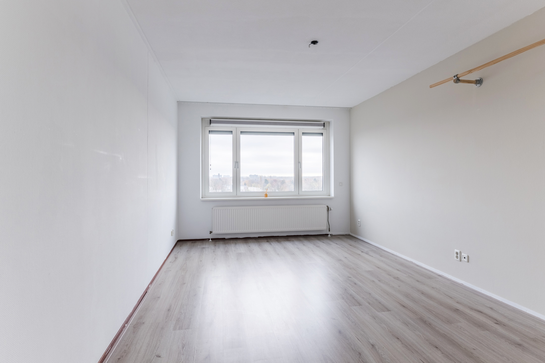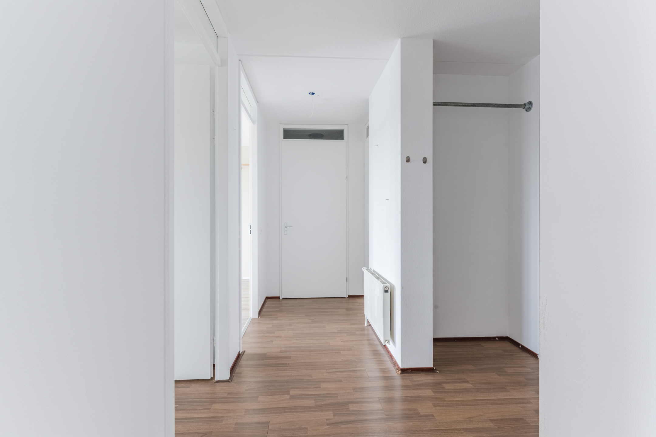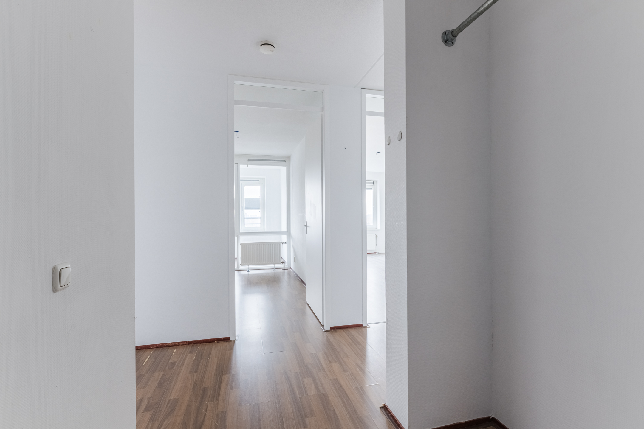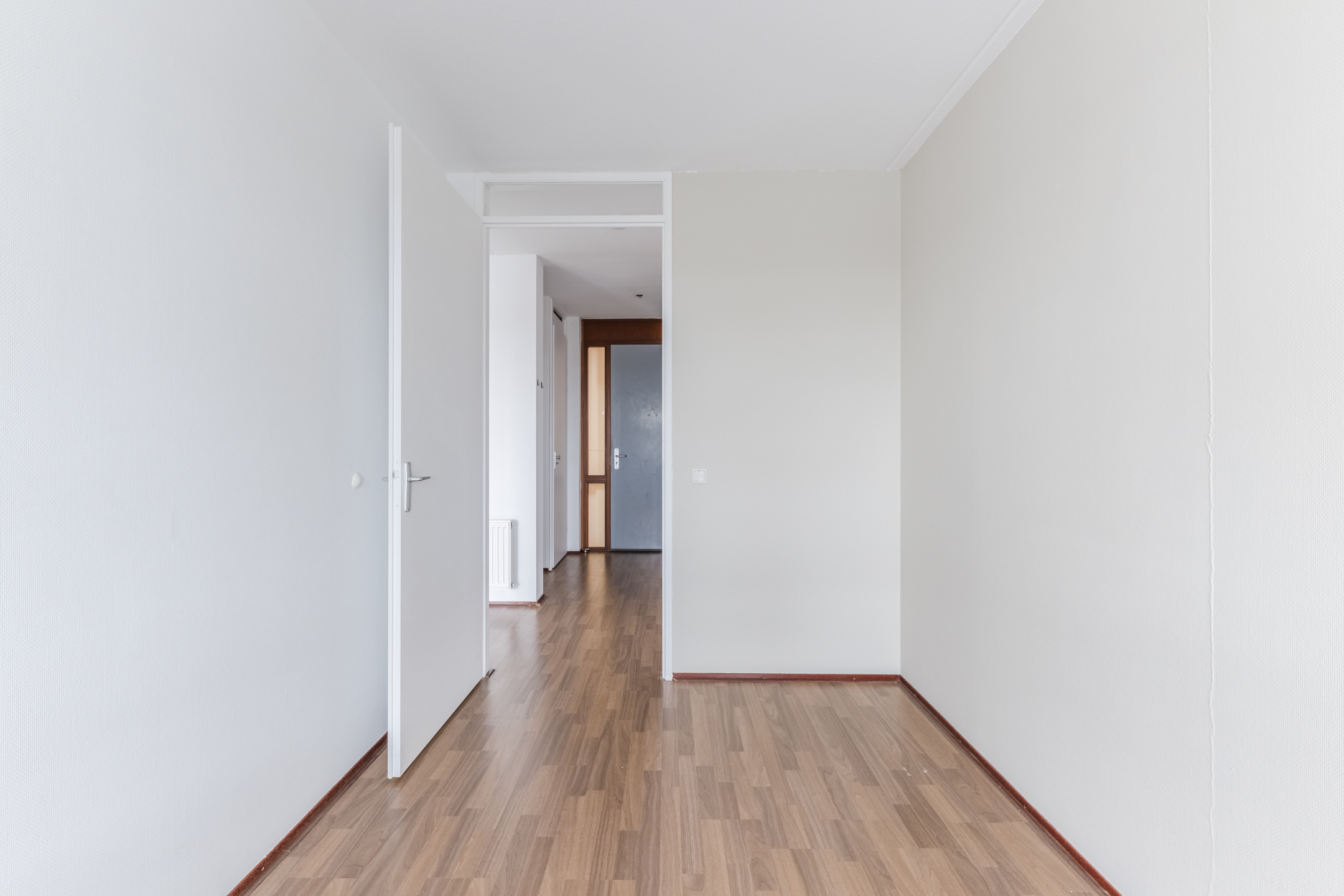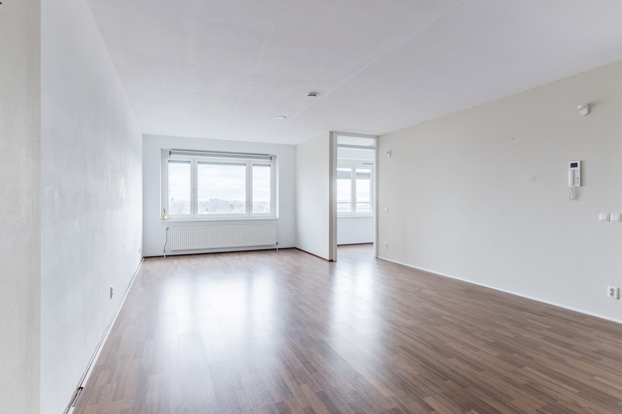 Door het gehele appartement is een laminaatvloerafwerking en behangende wandafwerking, met uitzondering van het sanitair.