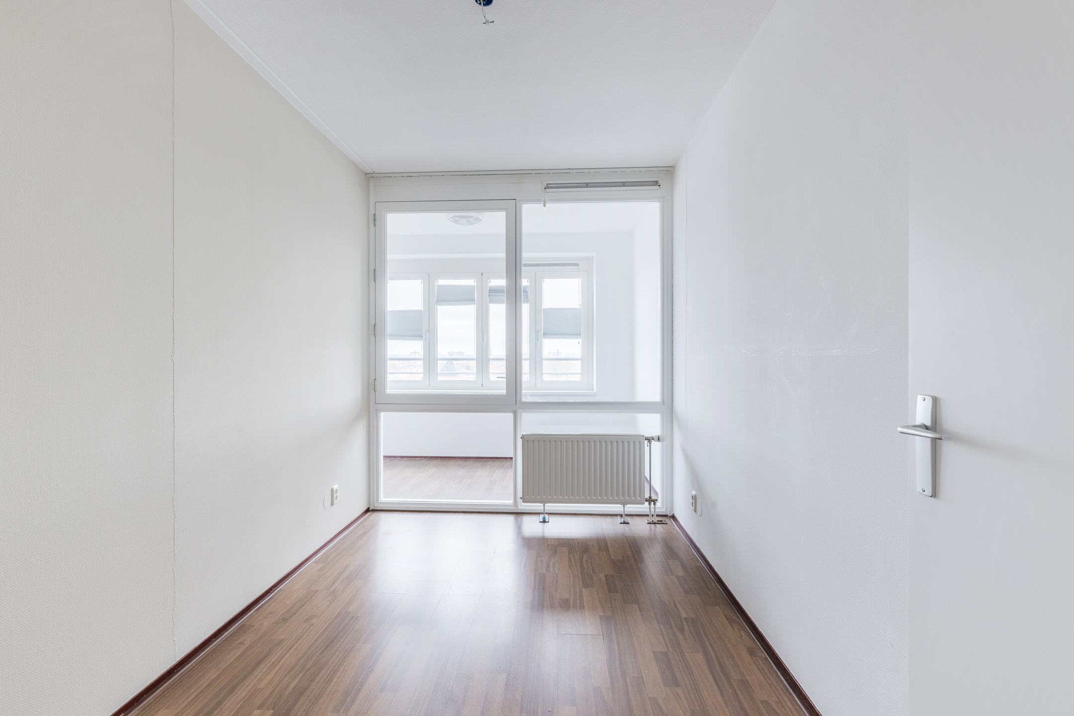 De hoofdslaapkamer (ca. 5,68 x 3,42 m) ligt aan de voorzijde van het appartement en beschikt over kantel-kiepramen met elektrische zonwering in de vorm van een screen.