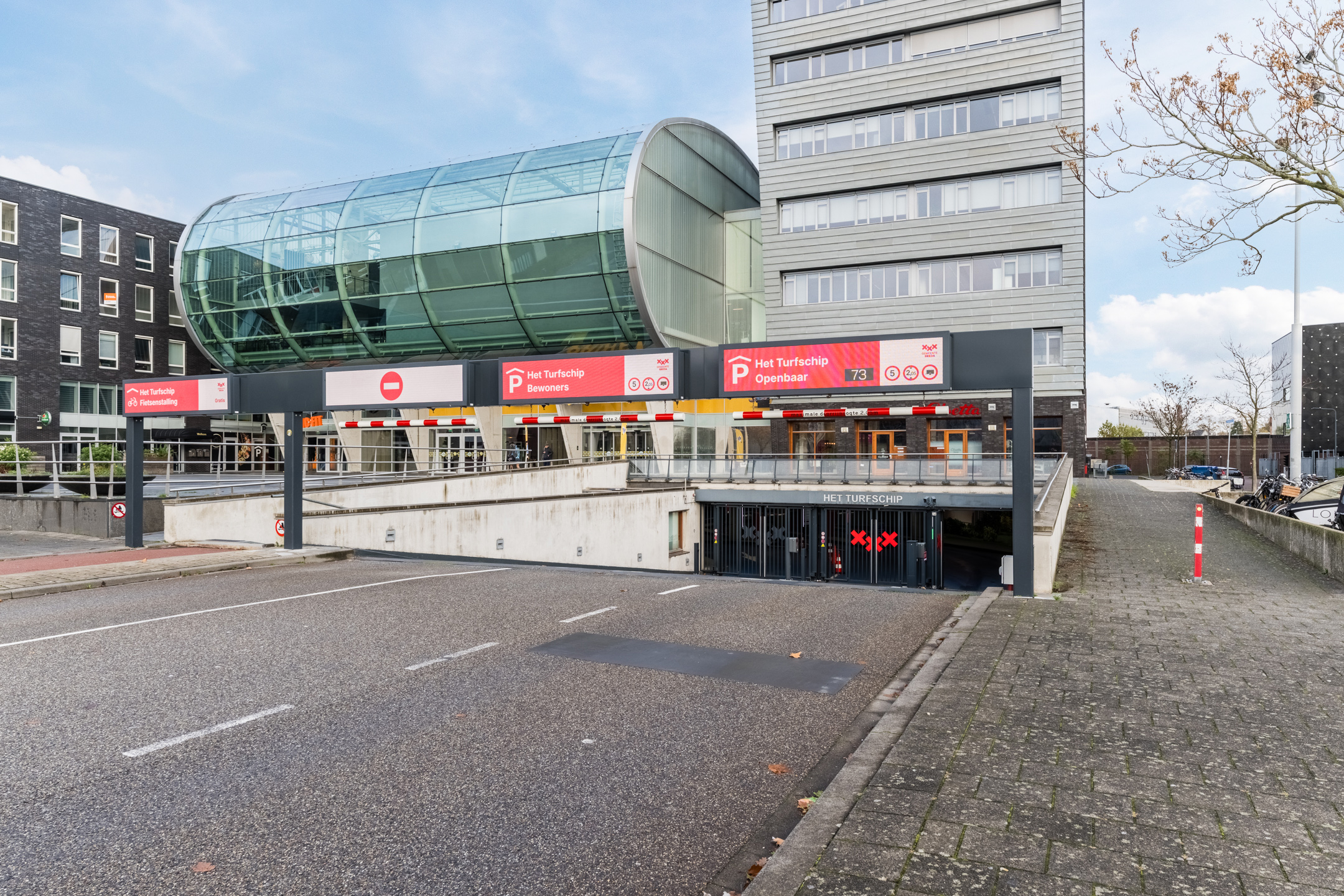 Onder het complex ligt parkeergarage ‘Het Turfschip', waar de mogelijkheid bestaat tot het afsluiten van een abonnement. Voor meer informatie kunt u terecht bij de gemeente Breda en Q-park.