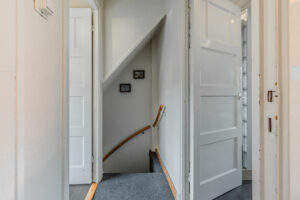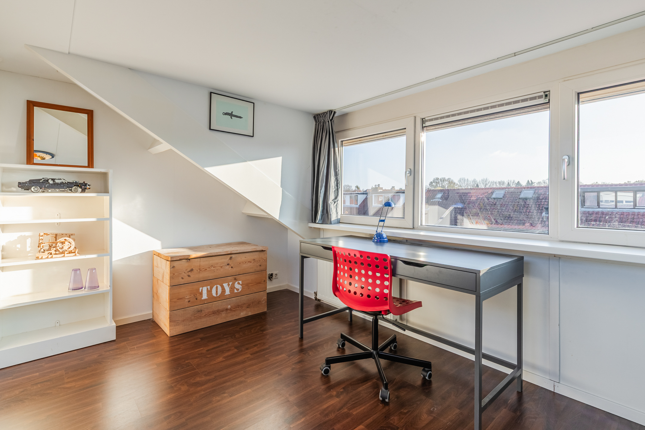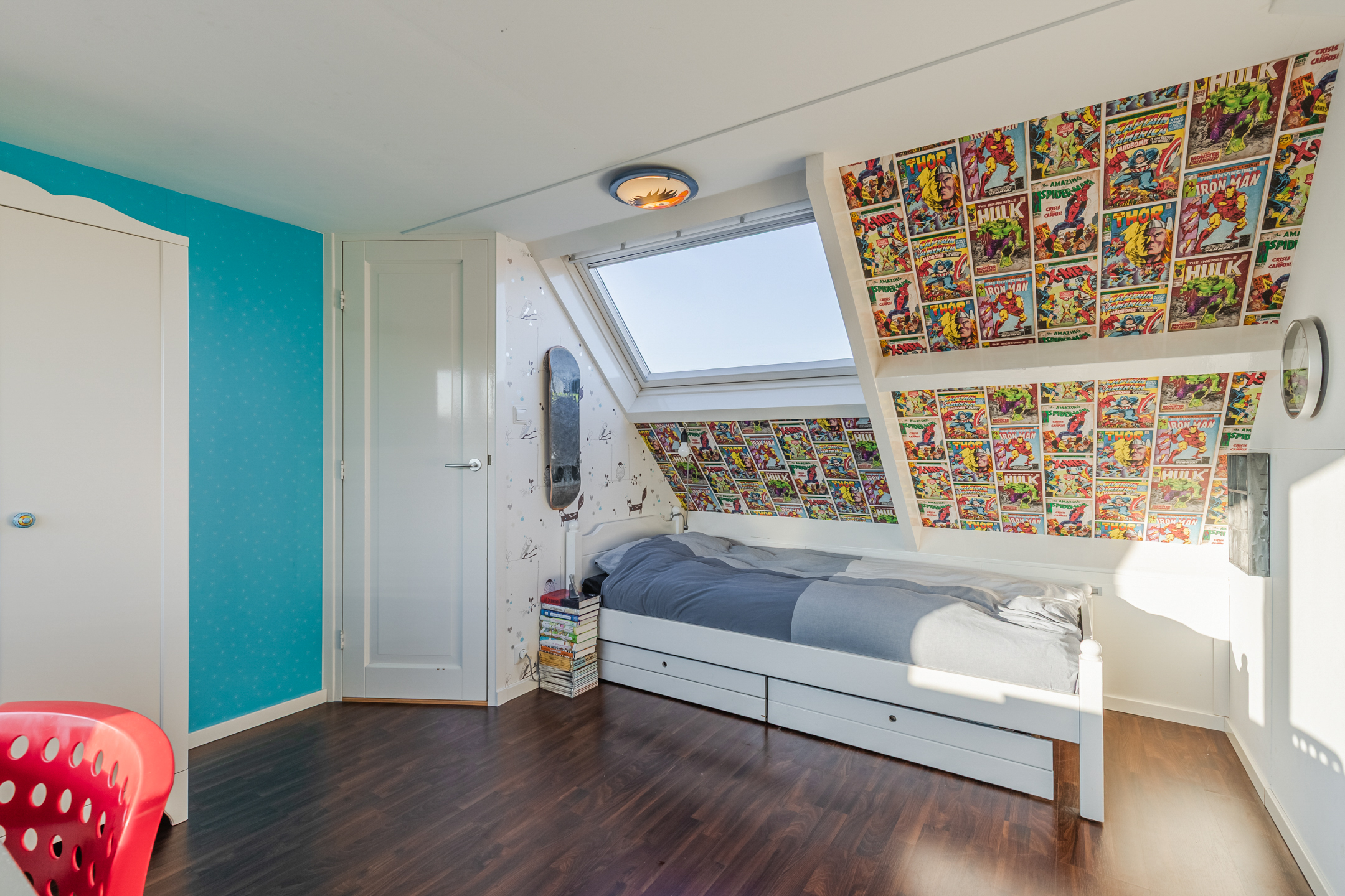 Overloop; royale multi-functionele ruimte (ca. 12 m²) en een grote dakkapel aan de achterzijde van de woning, dakraam aan de voorzijde, vaste kast met opstelling CV-Combiketel en zonneboiler en voldoende bergruimte achter de knieschotten.