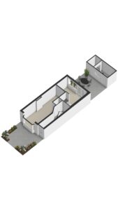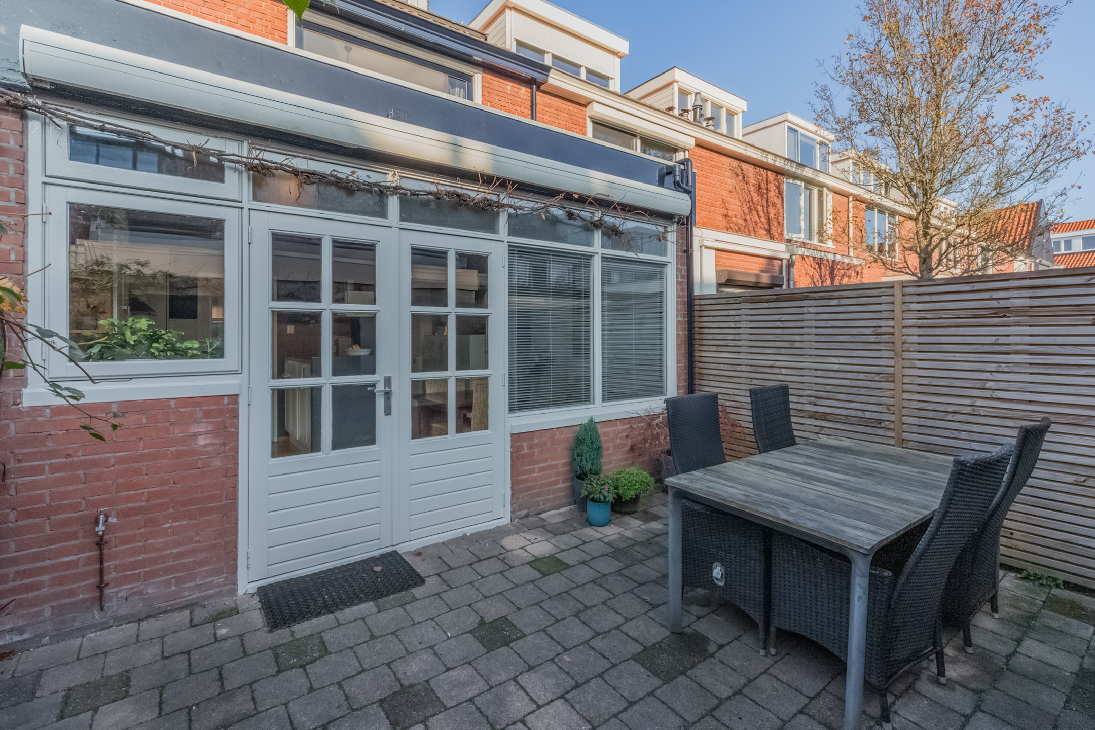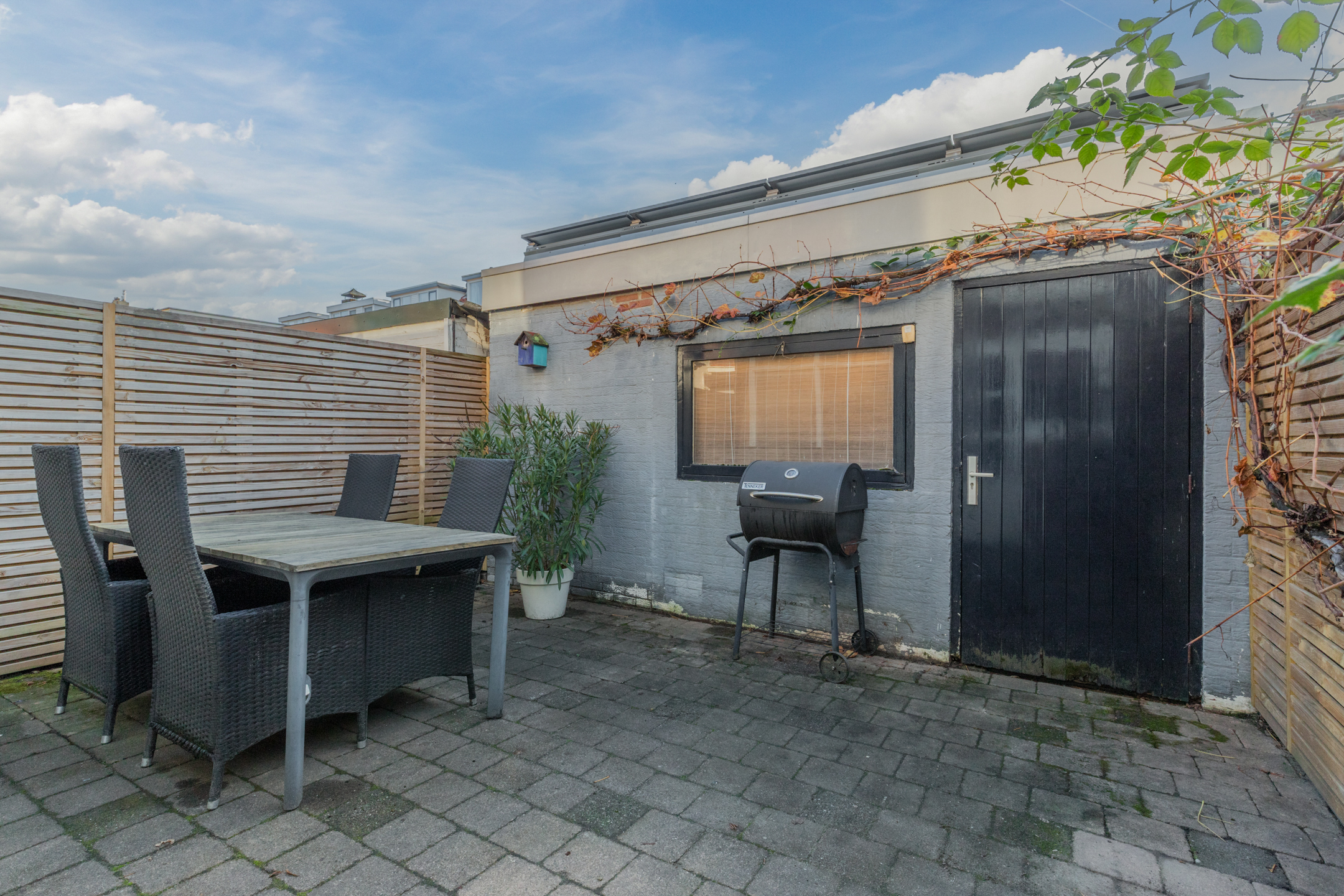 Gezellige stadstuin (ca. 4.20x5.00 m.) gunstig gesitiueerd op het zuiden en voorzien van sierbestrating en toegang tot een royale stenen berging (ca. 1.95x4.60 m.) voorzien van elektra en bereikbaar middels een achterom.
