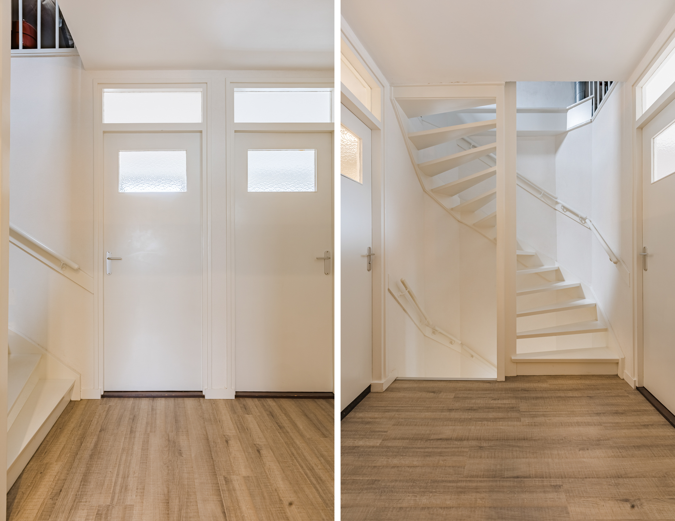 Overloop met trapopgang naar de tweede verdieping en toegang tot de 3 slaapkamers, inloopkast en badkamer.