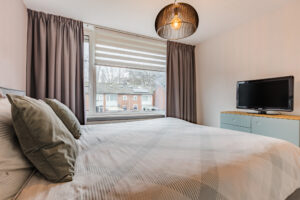 - De woning is op de begane grond en de eerste verdieping (met uitzondering van het badkamerraam) voorzien van screens.