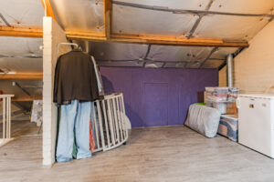 Ruime voorzolder met dakraam, veel bergruimte, opstelling CV-combiketel (Nefit HR 2014) en aansluitingen ten behoeve van de wasapparatuur; grote multi-functionele ruimte (ca. 3.55 x 4.15 m.) met dakraam en toegang tot veel extra bergruimte.