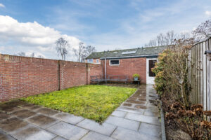 De achtertuin is ongeveer 10 meter diep en biedt voldoende privacy door de ruim opgezette omgeving. De tuin is onderhoudsvriendelijk en heeft een afgesloten achterom via de berging met een loopdeur naar de brandgang.