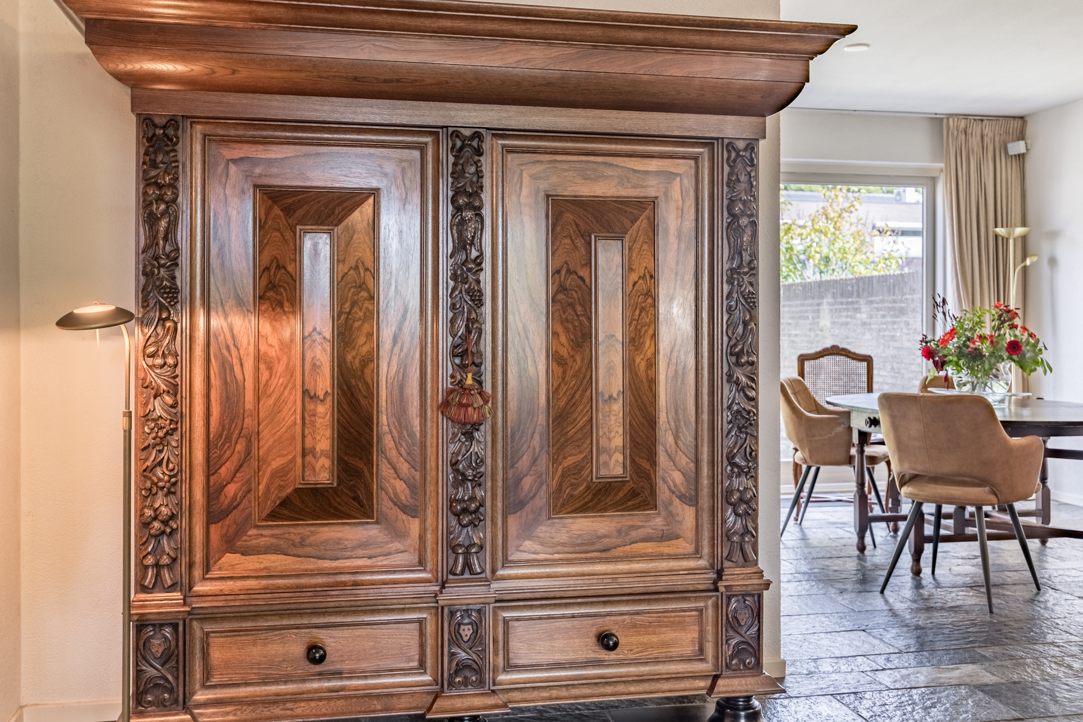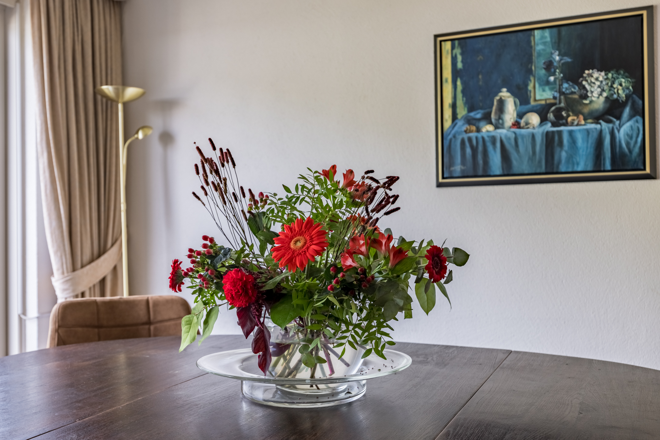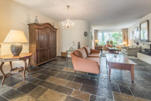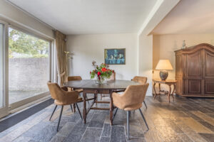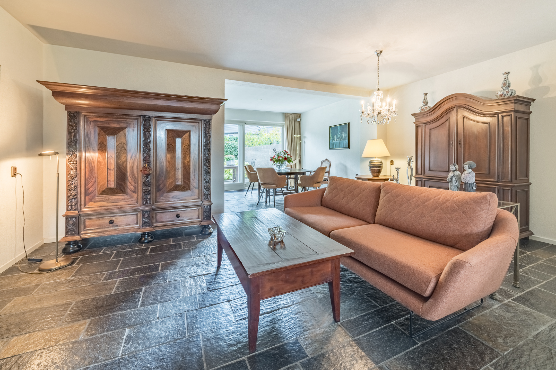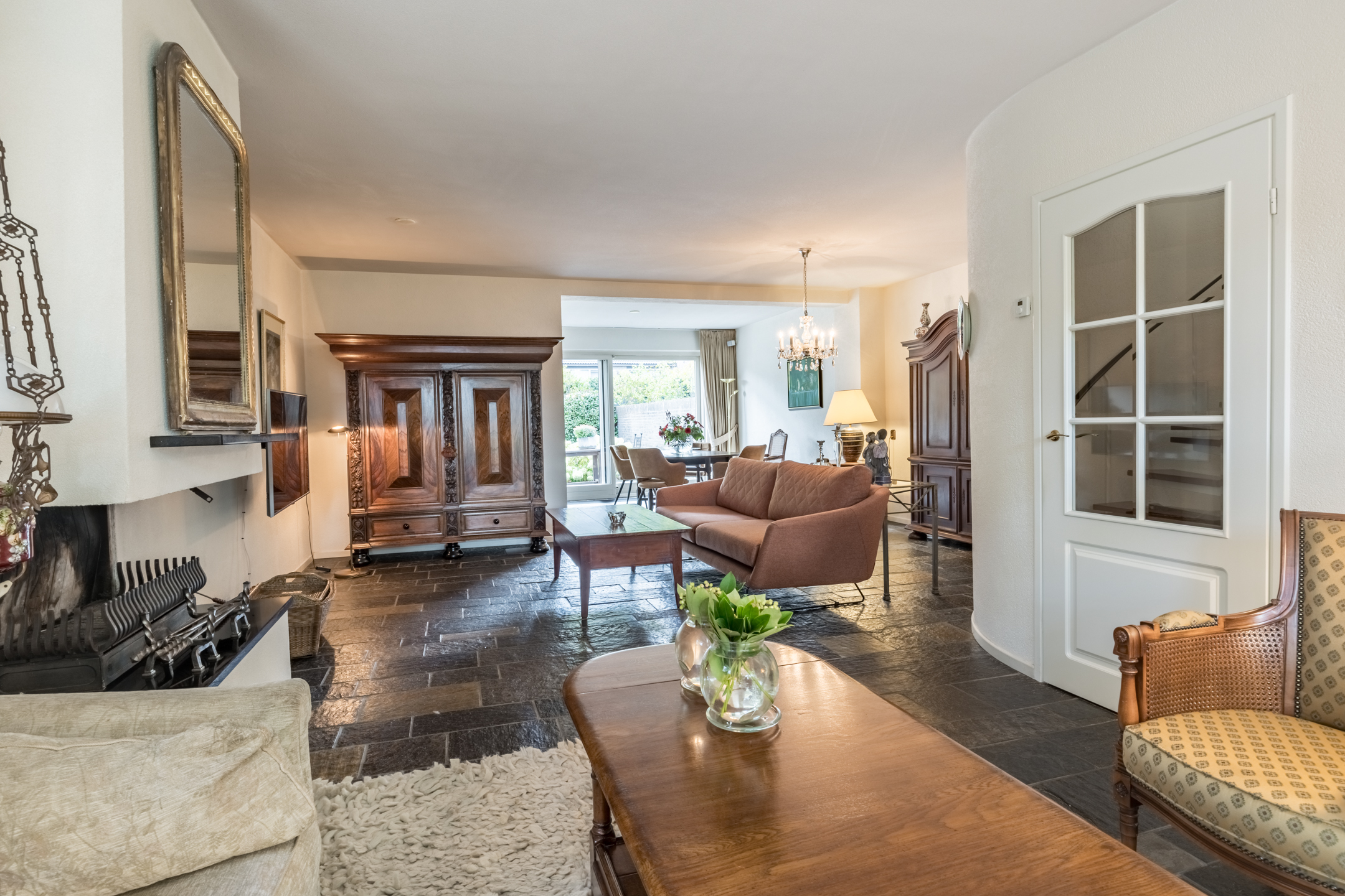 Royale en uitgebouwde woonkamer van maar liefst circa 51m² (exclusief keuken) voorzien van een leistenen vloer met vloerverwarming, schouw met open haard en een schuifpui naar de achtertuin. Vanwege de grootte van de woonkamer biedt deze volop mogelijkheden. Aan de voor- en achterzijde is een zonwering aanwezig.
