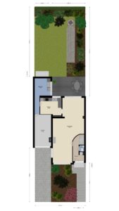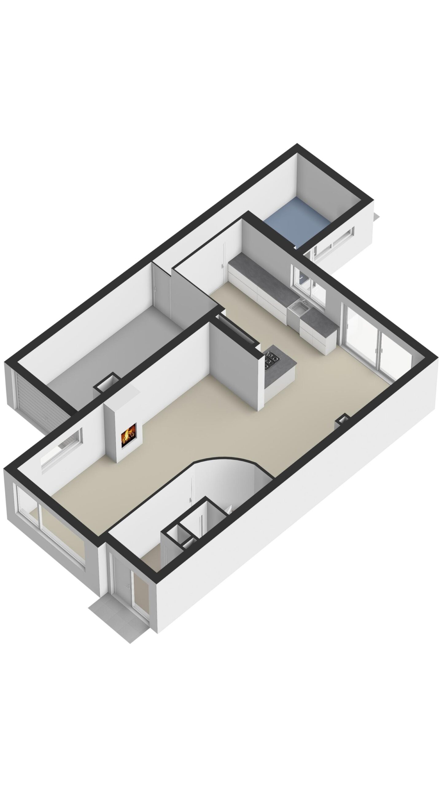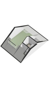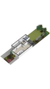 De mogelijkheid bestaat om de keuken meer bij het leefgedeelte te betrekken en een prachtige woonkeuken met eiland te creëren. Om u hier een idee van te geven hebben wij hiervoor een “optie” tekening toegevoegd.