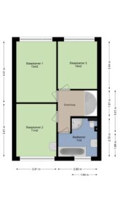 Voorslaapkamer circa 11m², achterslaapkamer circa 13m² en een achterslaapkamer circa 10m². Alle slaapkamers zijn voorzien van een laminaatvloer en structuur wandafwerking.