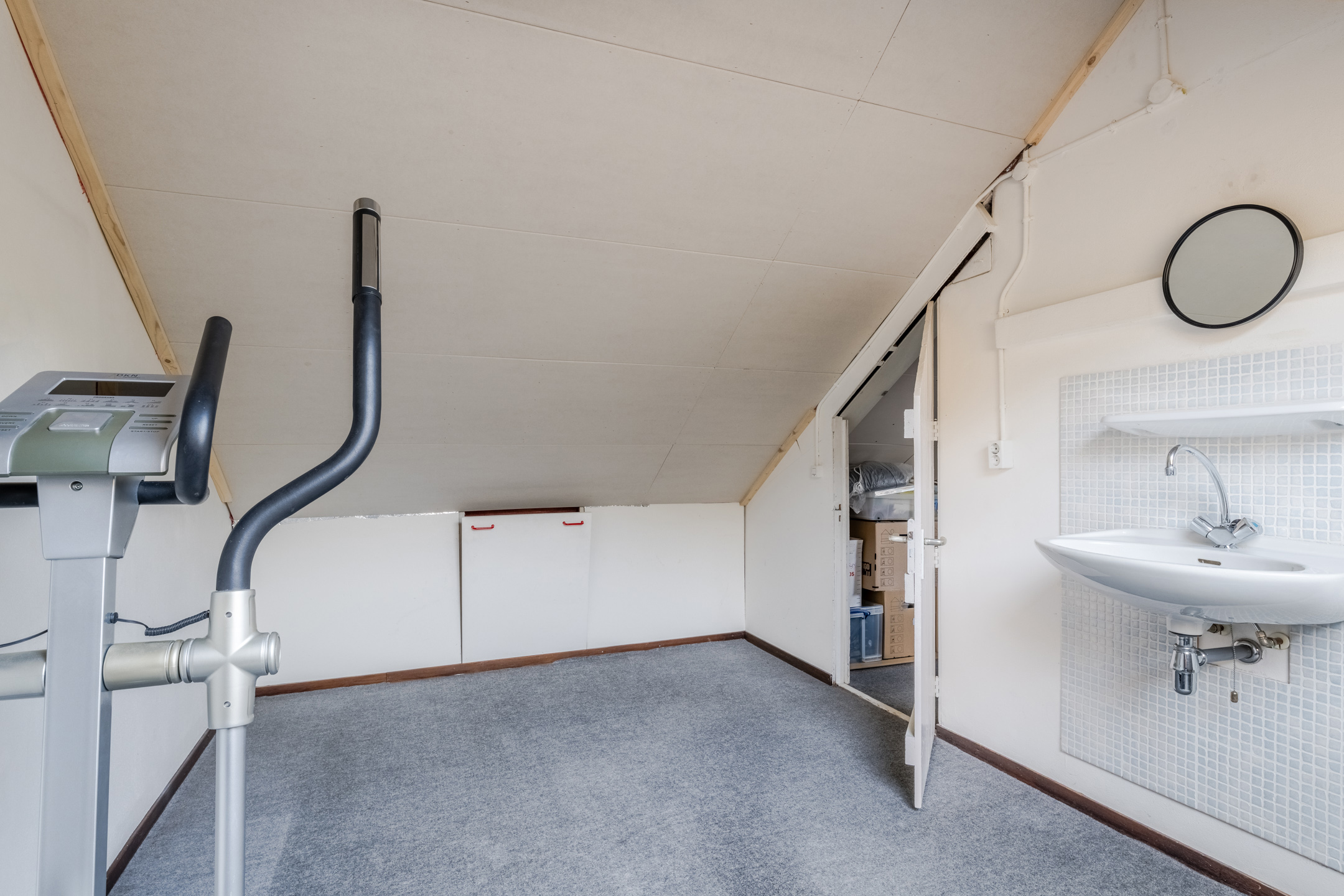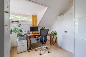 Vanaf de voorzolder is er toegang tot een zolderslaapkamer circa 8m² met groot, vernieuwd dakraam en bergruimte onder de dakschuinte.