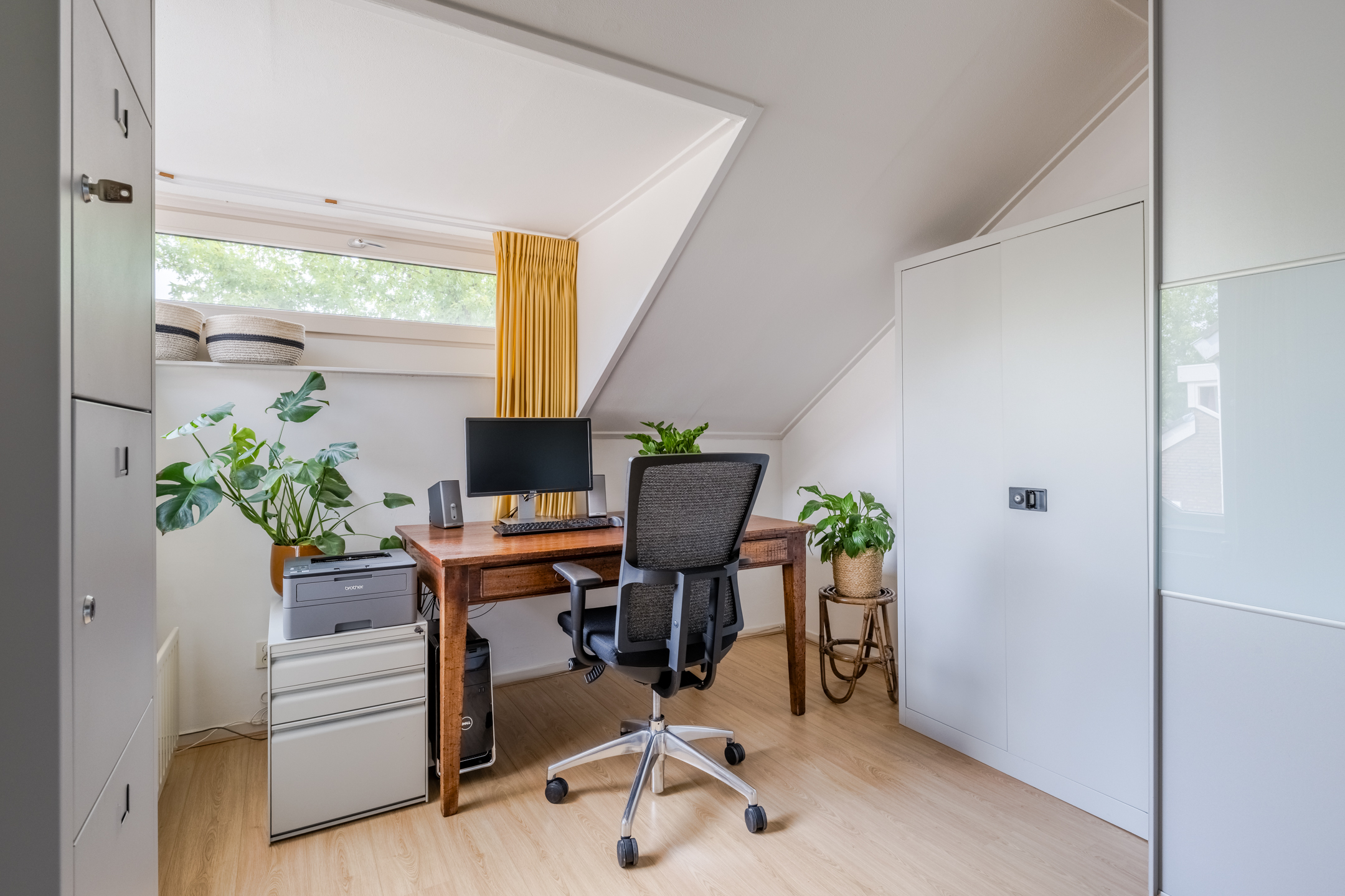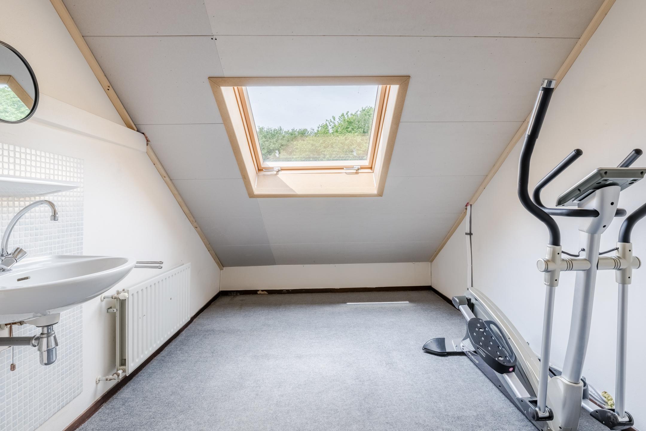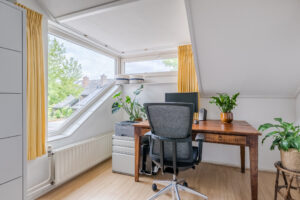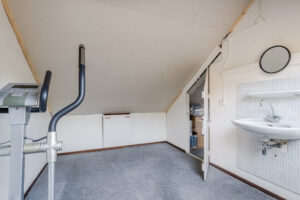 Ruime voorzolder met vernieuwd dakraam en de opstelplaats van de technische apparatuur (c.v. combi ketel oktober 2014, hybride warmtepomp juli 2022 en de warmtepomp boiler maart 2023).