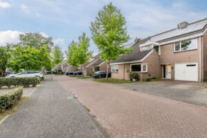 Aan de voorzijde van de woning eigen oprit voor 2 auto’s. De oprit geeft toegang tot de garage en entree van de woning.