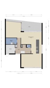 Prachtige, brede living circa 101m² (inclusief keuken) met een breedte van maar liefst 12 meter. Deze geweldige ruimte met veel glas aan de achterzijde biedt veel leefruimte en een fenomenaal uitzicht. Een schuifpui geeft toegang tot een groot terras met veranda.