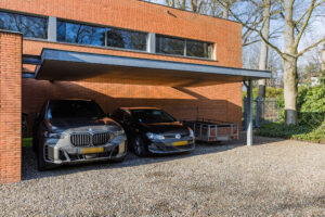 Aan de voorzijde van de villa is volop parkeergelegenheid op eigen terrein aanwezig en een carport voor drie auto’s. De oprit biedt tevens toegang tot de garage en de entree van de villa.