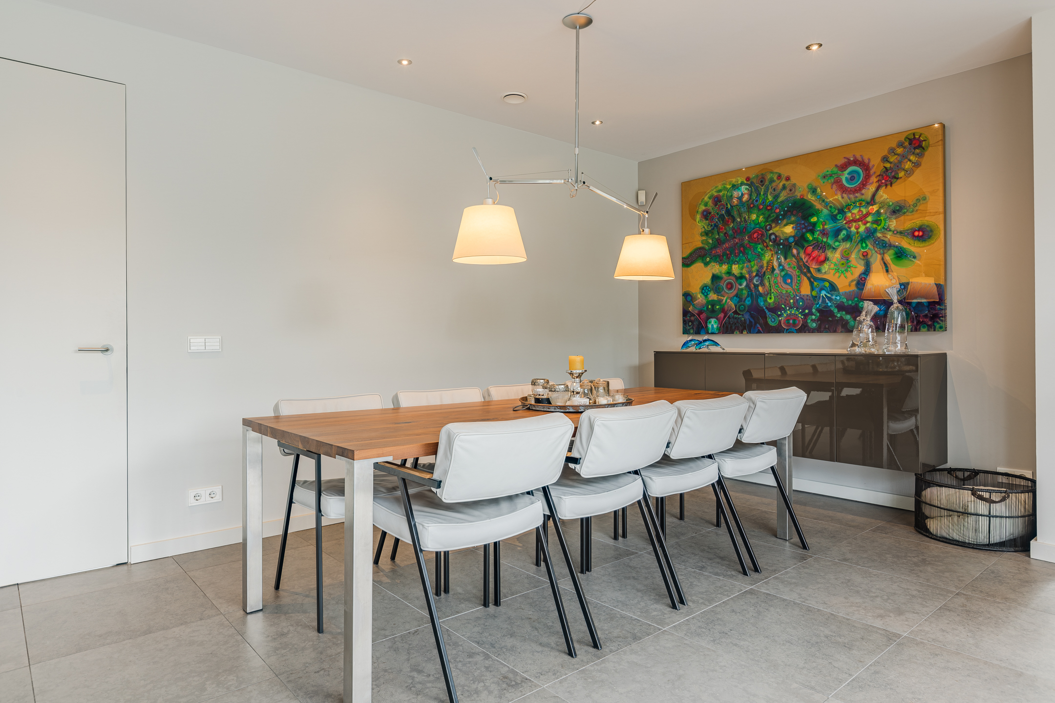 De begane grond is voorzien van een fraaie tegelvloer en strak stucwerk wand- en plafondafwerking.