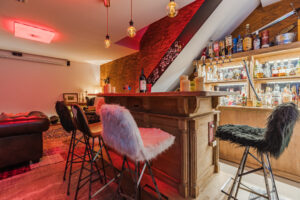 Multifunctionele ruimte circa 34m² die op dit moment in gebruik is als bar en chill ruimte.