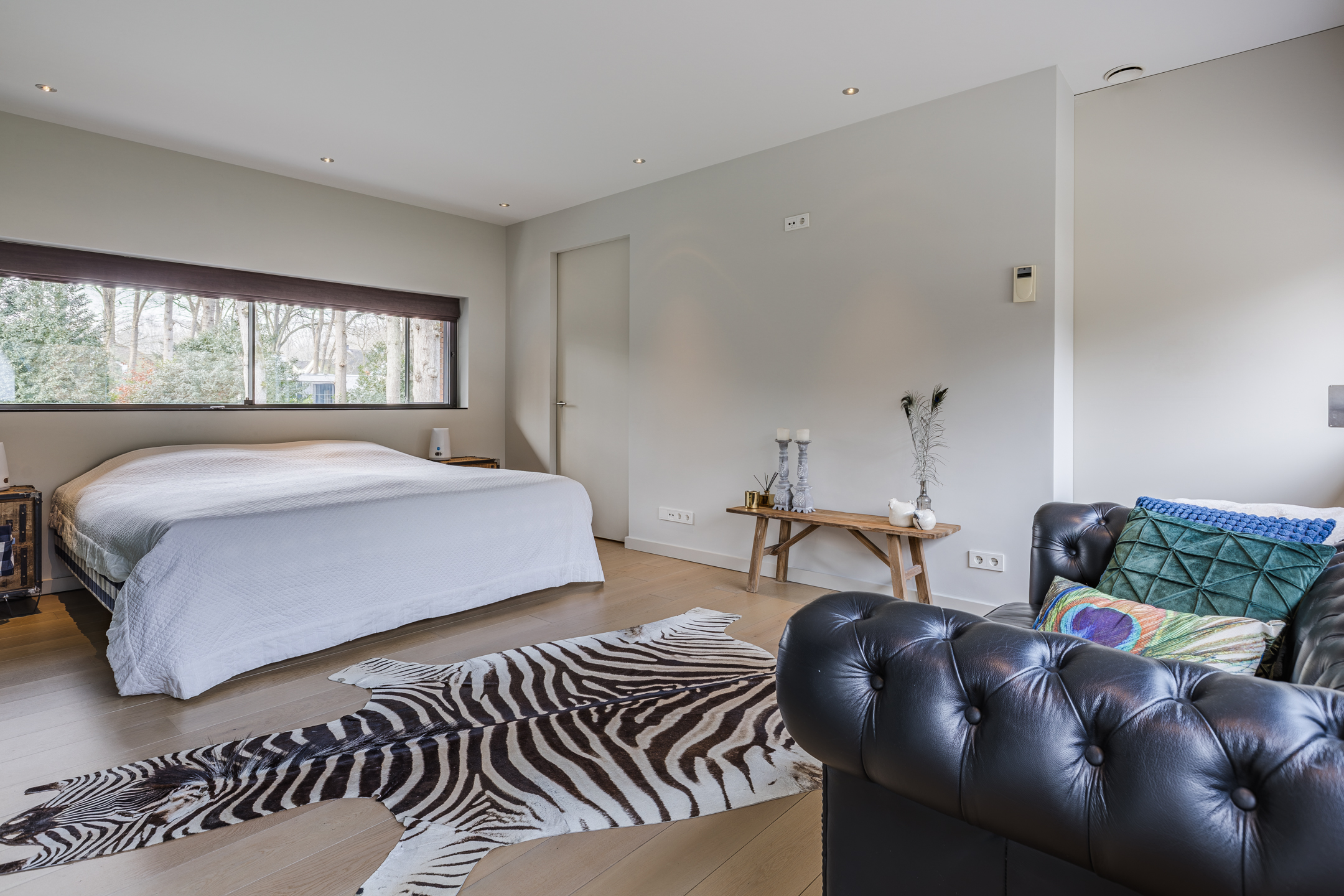 Alle slaapkamers zijn voorzien van een eiken vloer en strak stucwerk wand- en plafondafwerking.