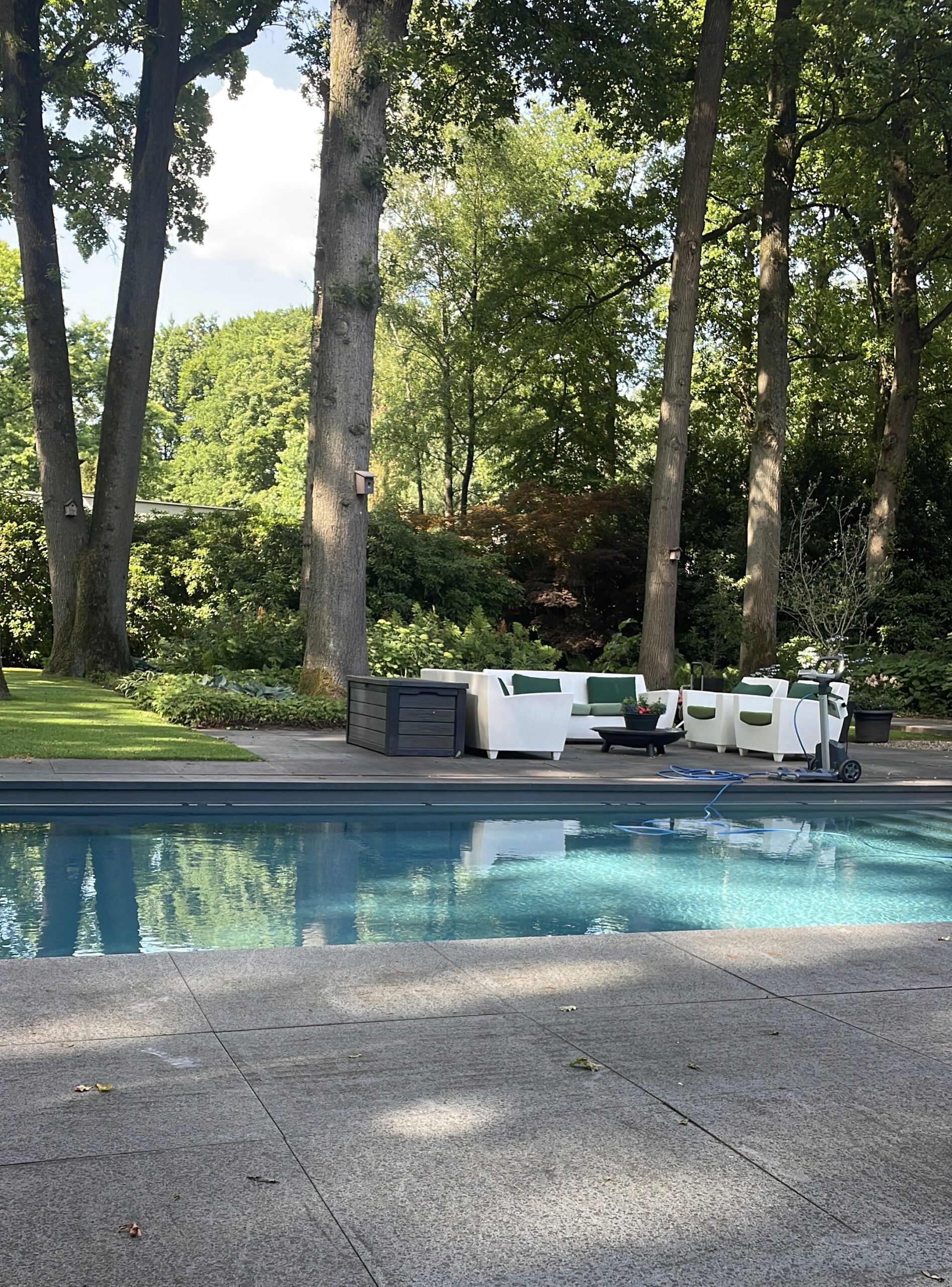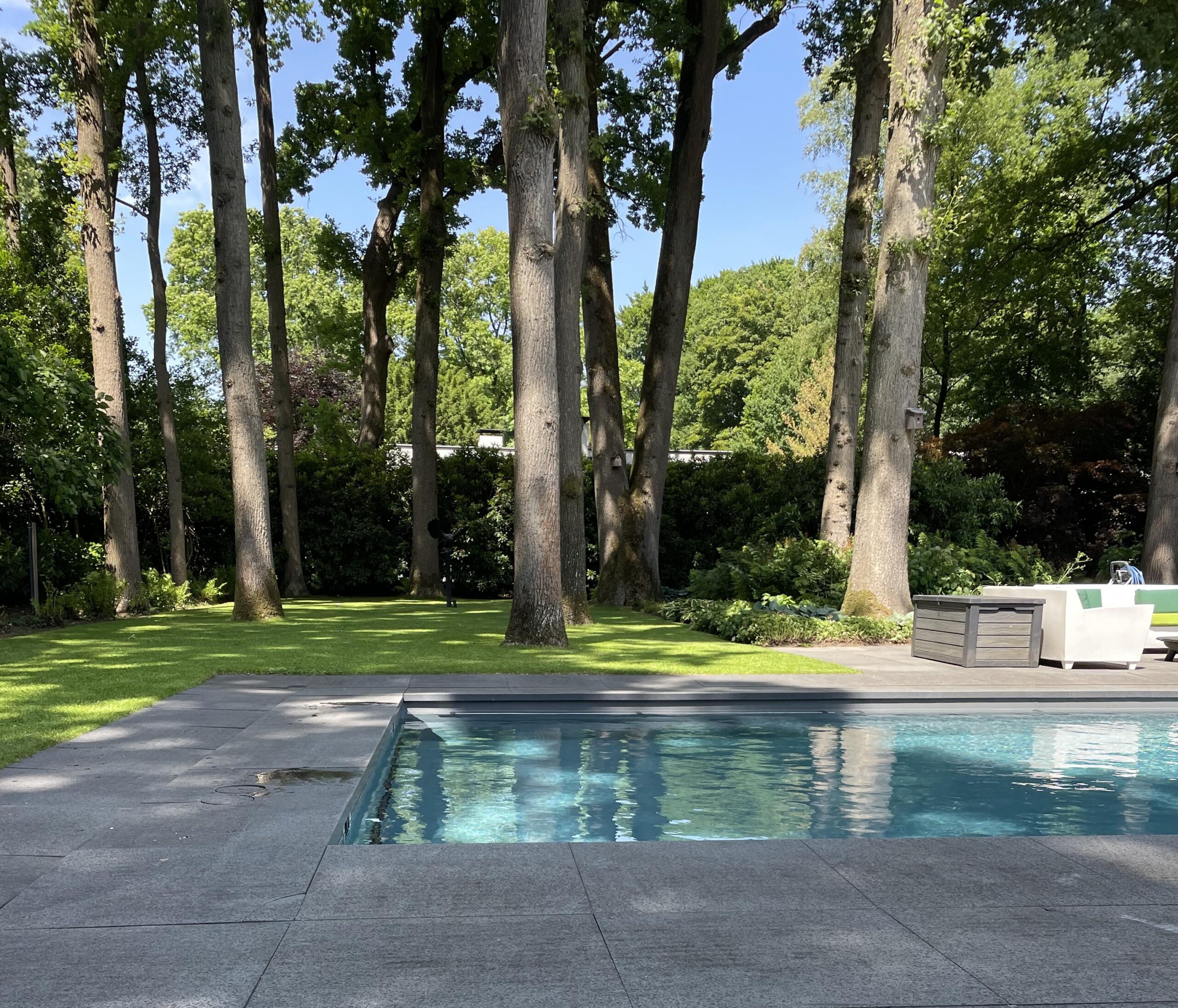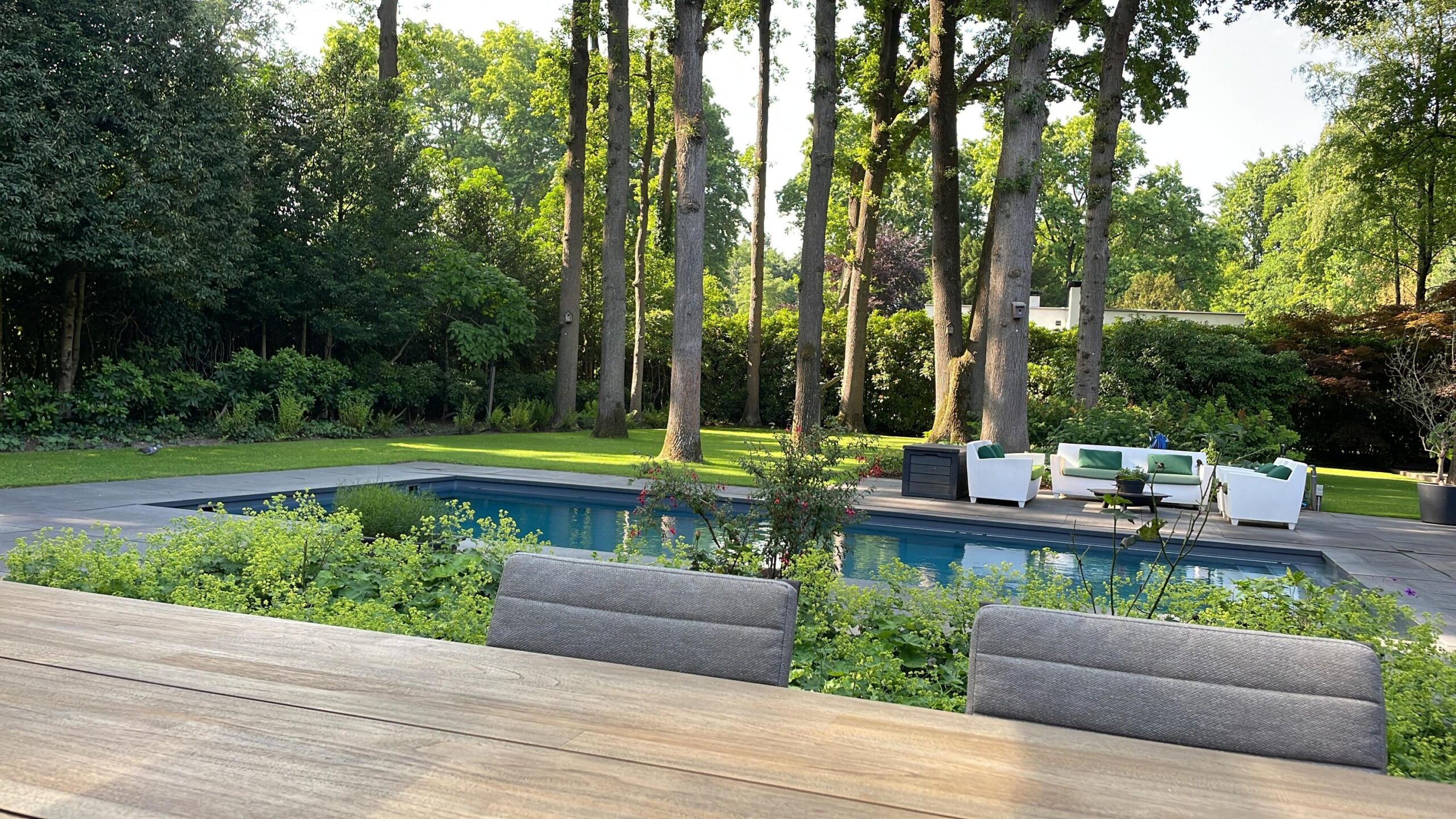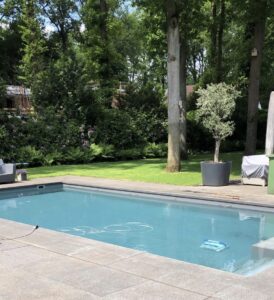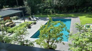 In de tuin is een strak en verwarmd zwembad van circa 4.80 x 9.60m. aanwezig.