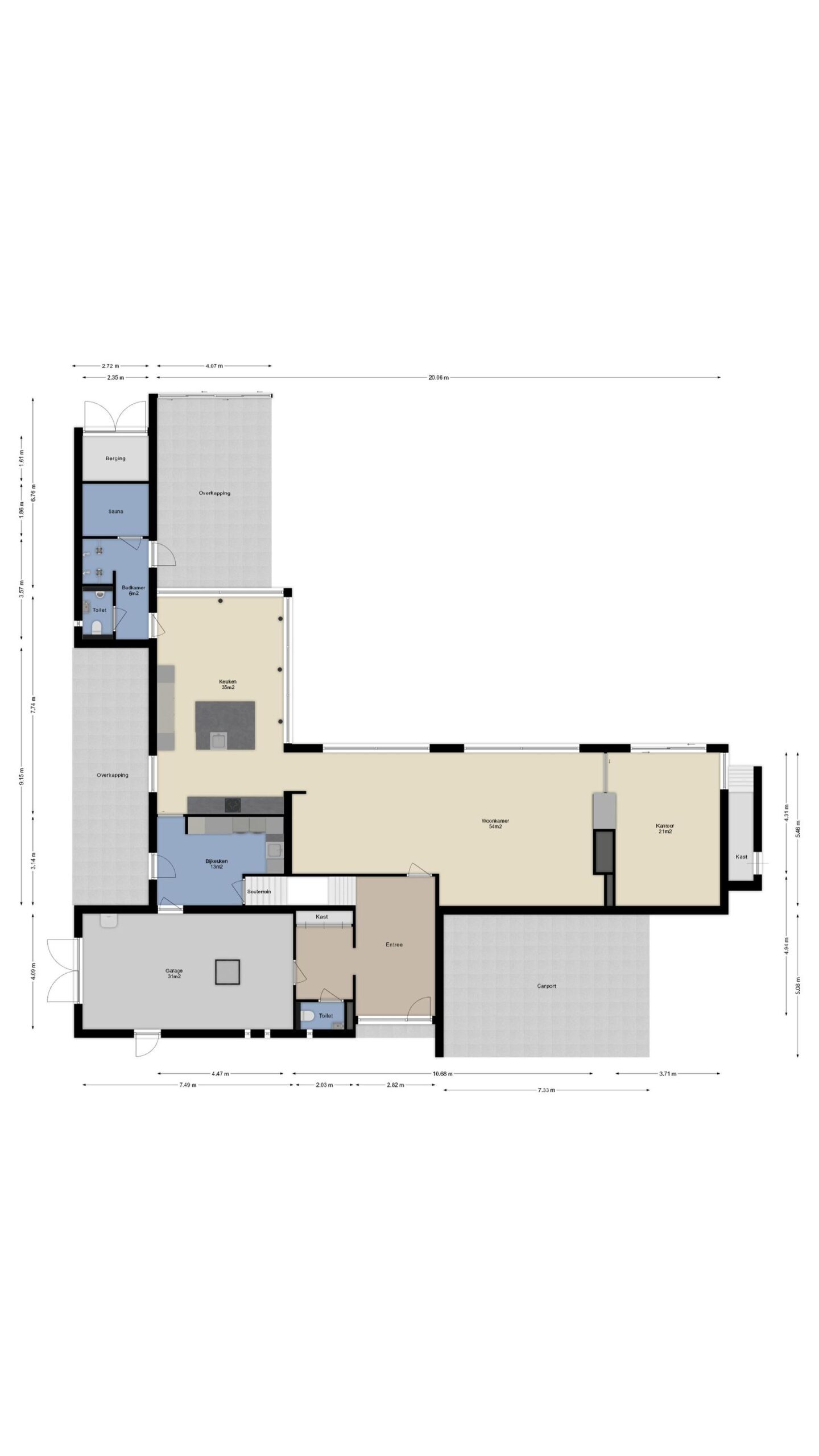 - Gezien de functie, het afwerkingsniveau en dergelijke van het souterrain is deze ruimte meegenomen in de totale woonoppervlakte.