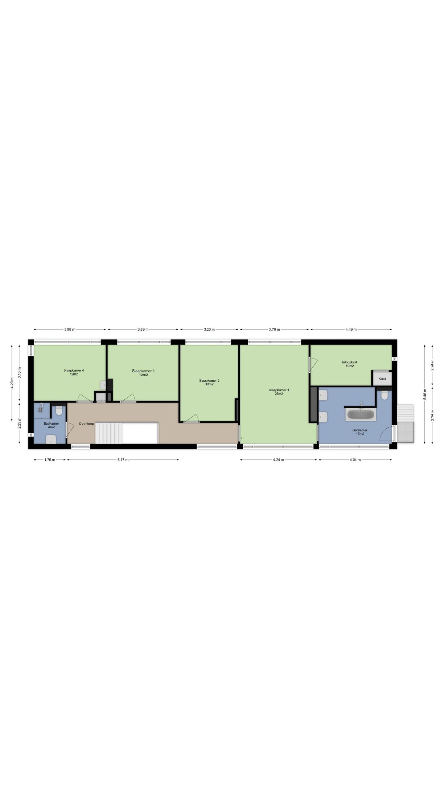 Achterslaapkamer circa 13m², achterslaapkamer circa 12m² en een achterslaapkamer circa 12m² voorzien van een vaste wastafel met meubel.