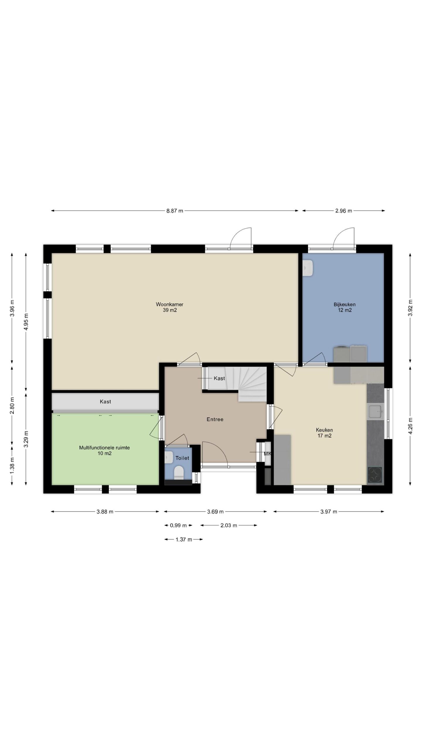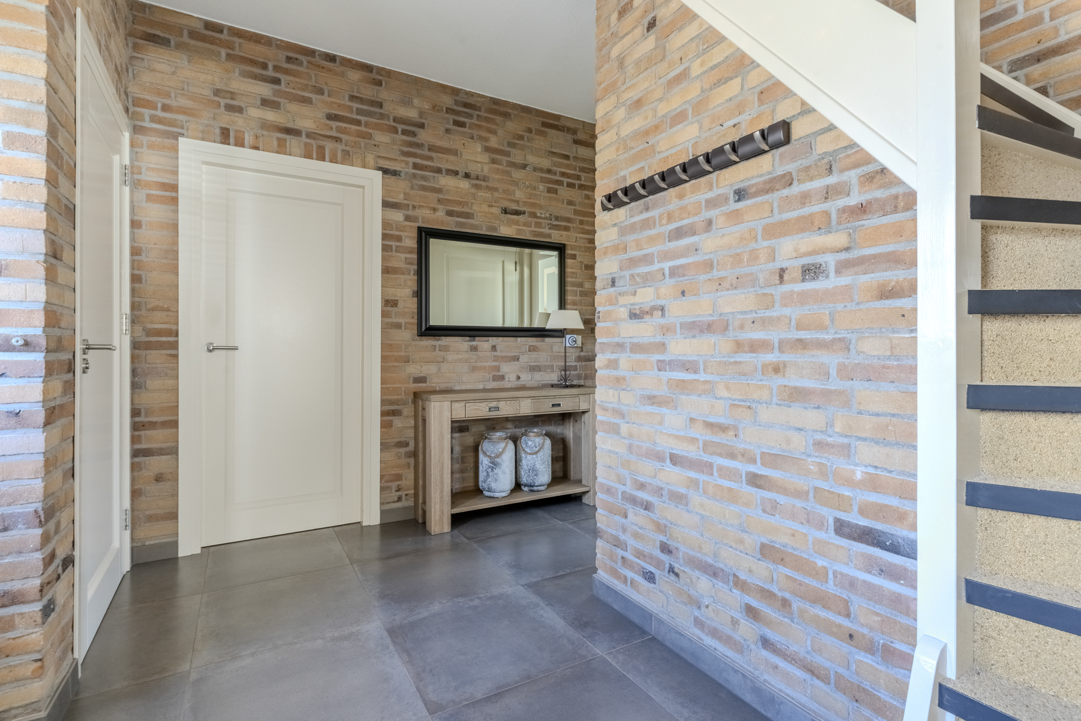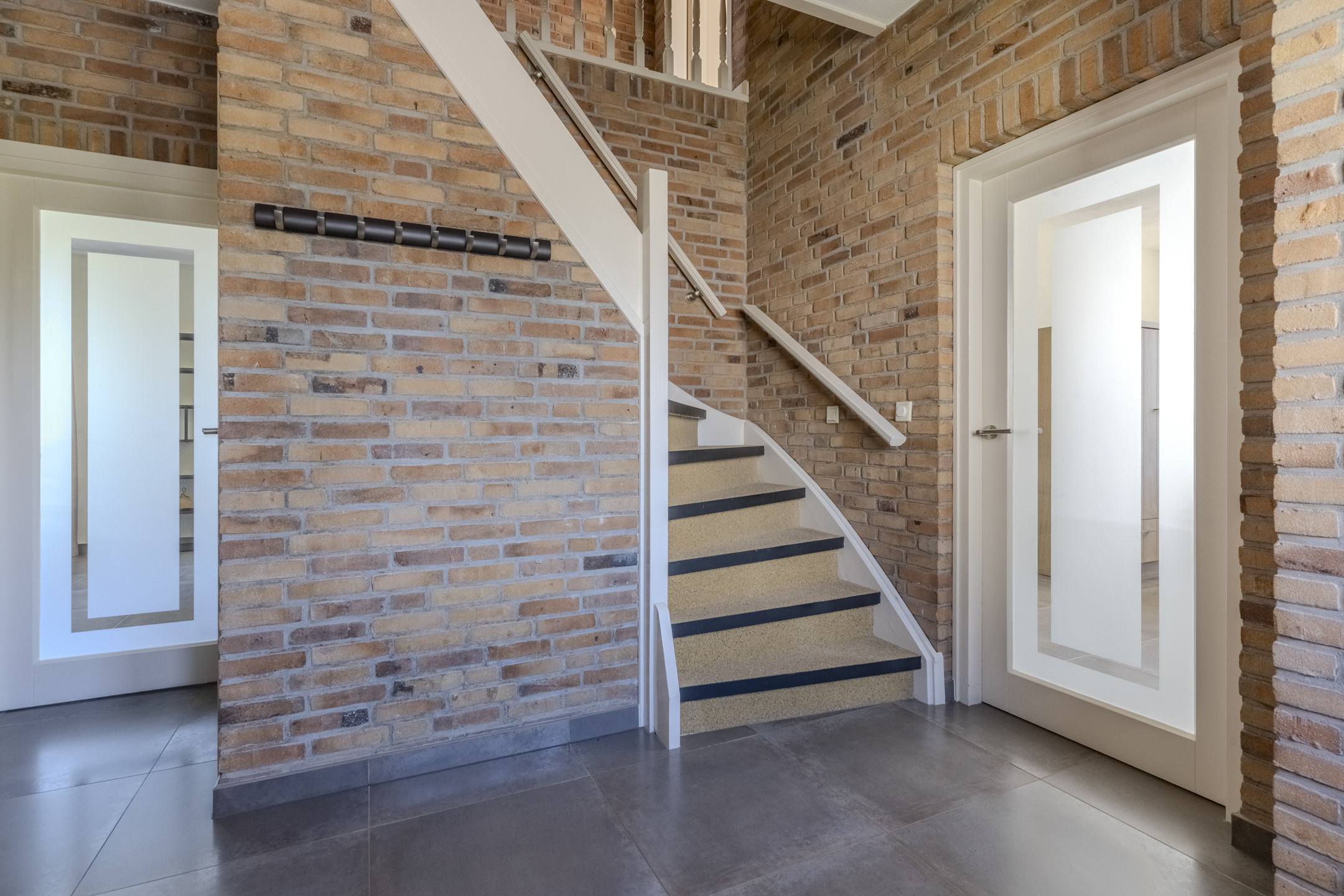De hal geeft toegang tot de woonkamer, woonkeuken, multifunctionele ruimte en trapopgang naar de eerste verdieping.