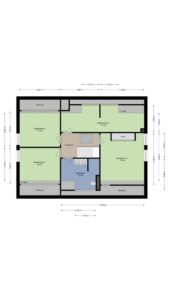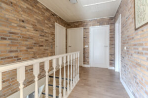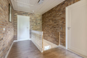 Overloop die toegang geeft tot vier ruime slaapkamers en de badkamer.