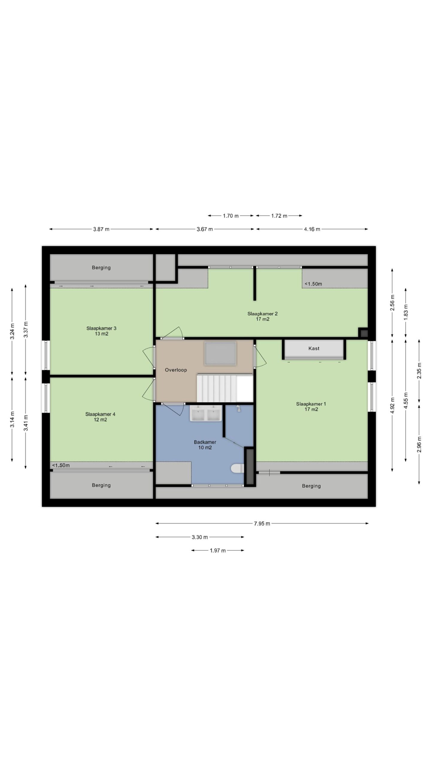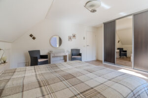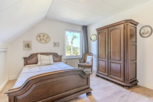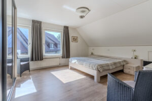 Voorslaapkamer circa 17m² met een vaste kastenwand, voorslaapkamer circa 12m², achterslaapkamer circa 17m² met dakkapel (2000) en een achterslaapkamer circa 13m². Drie slaapkamers zijn voorzien van bergruimte onder de dakschuinte.