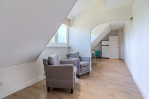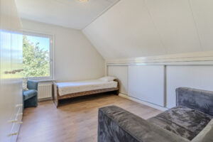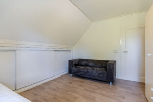 Multifunctionele ruimte circa 10m² met spachtelputz wandafwerking, inbouwspots en een vaste kastenwand. Deze ruimte kan ideaal gebruikt worden als slaapkamer, werkkamer of speelkamer.