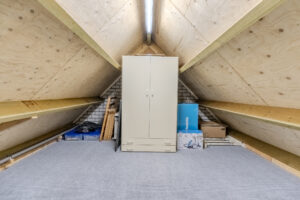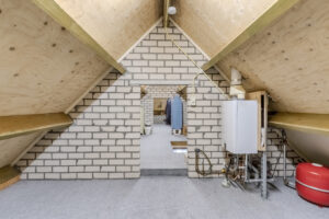Naast volop bergruimte bevinden zich hier de c.v. combi ketel (Remeha Avanta 2012) en de omvormer voor de zonnepanelen.