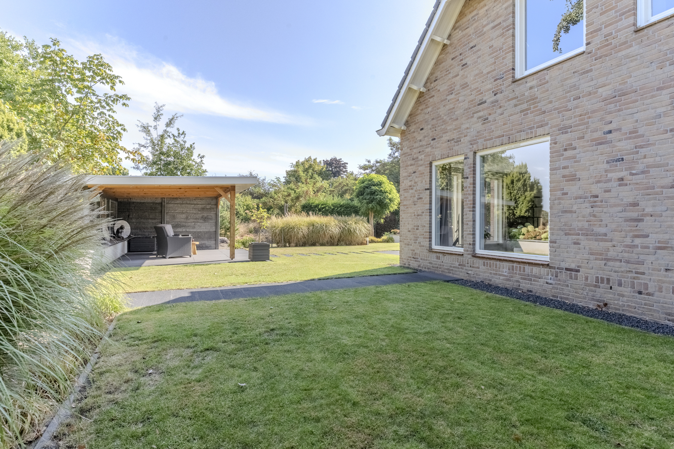 De royale achtertuin heeft een groot terras, gezellige veranda, op twee plaatsen een achterom en is vrij gelegen. Vanuit de tuin is er daarnaast toegang tot de garage en carport.