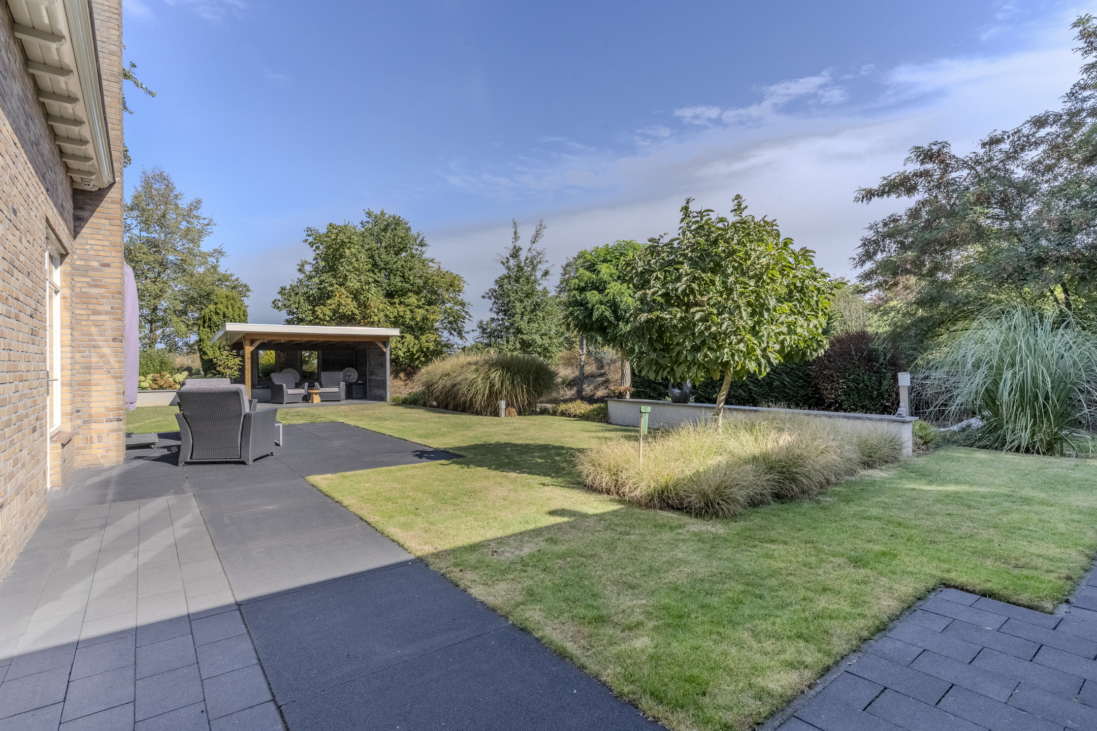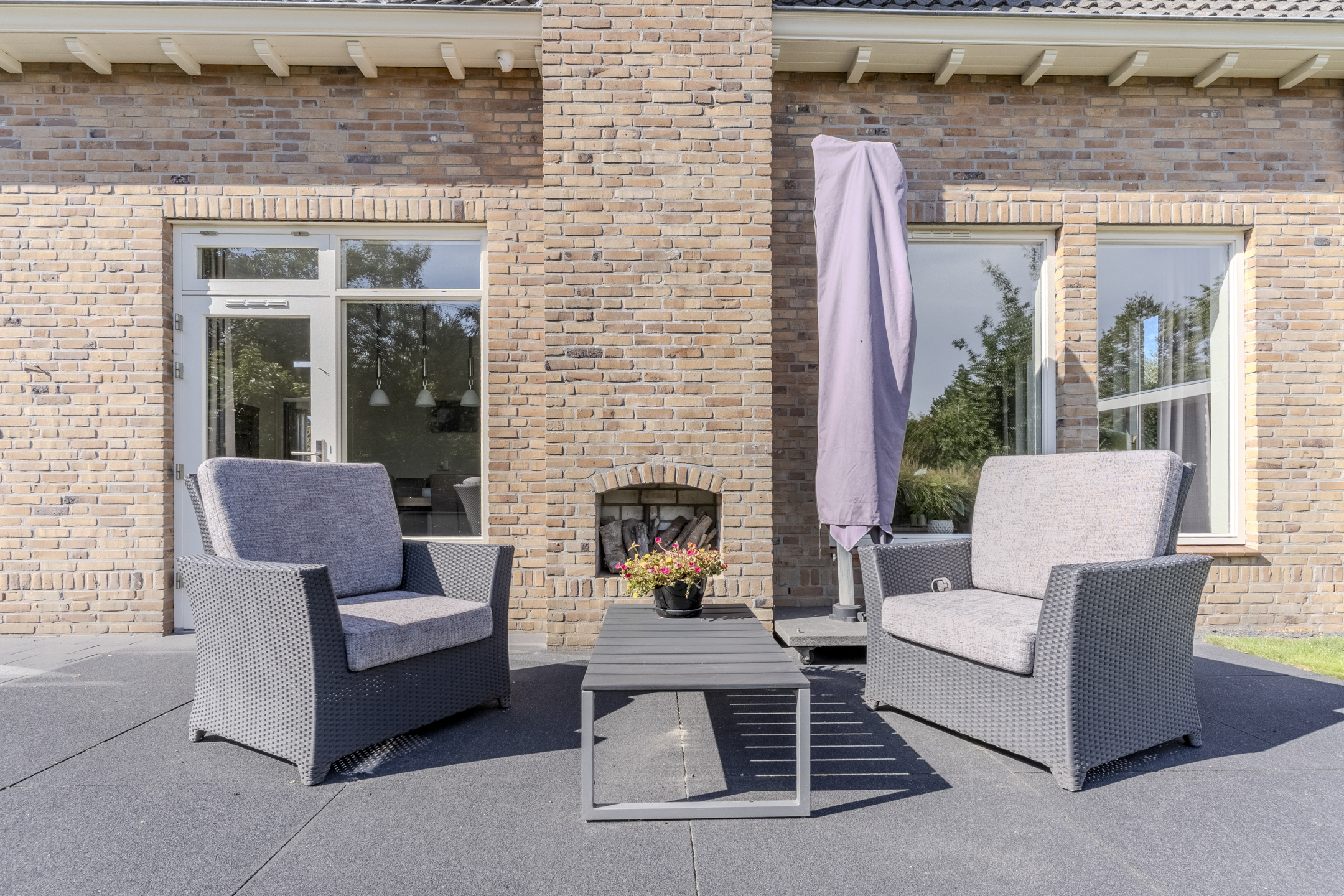 De prachtige achtertuin is vrij gelegen en in 2012 opnieuw aangelegd. De achtertuin is voorzien van een groot terras met buitenhaard, een gezellige veranda, graspartij en fraaie borders.