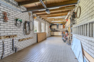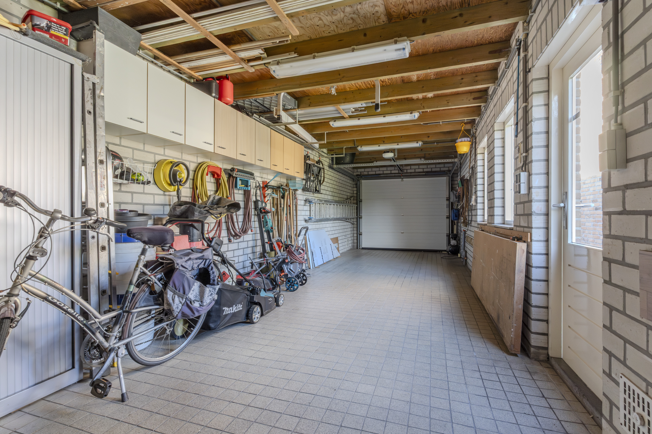 Diepe garage circa 33m² in spouw uitgevoerd. De garage is voorzien van een tegelvloer en een elektrisch bedienbare geïsoleerde sectiedeur.