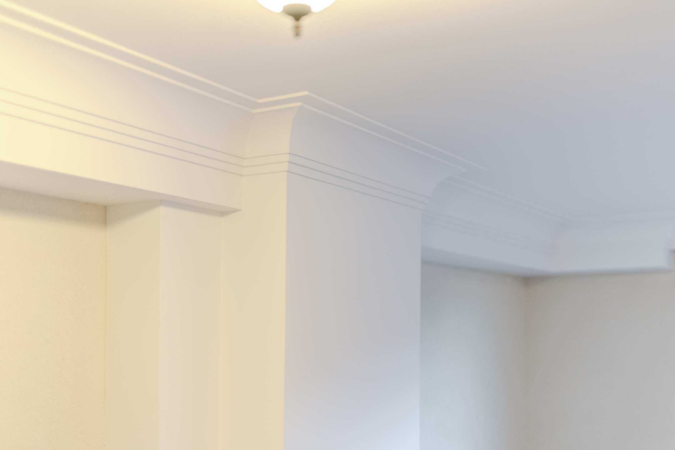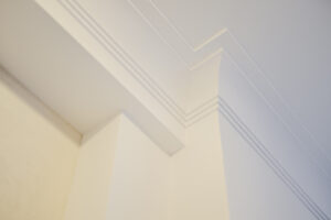 - Het hoge plafond van de woonkamer is ambachtelijk gestuct met een schitterende sierlijst.