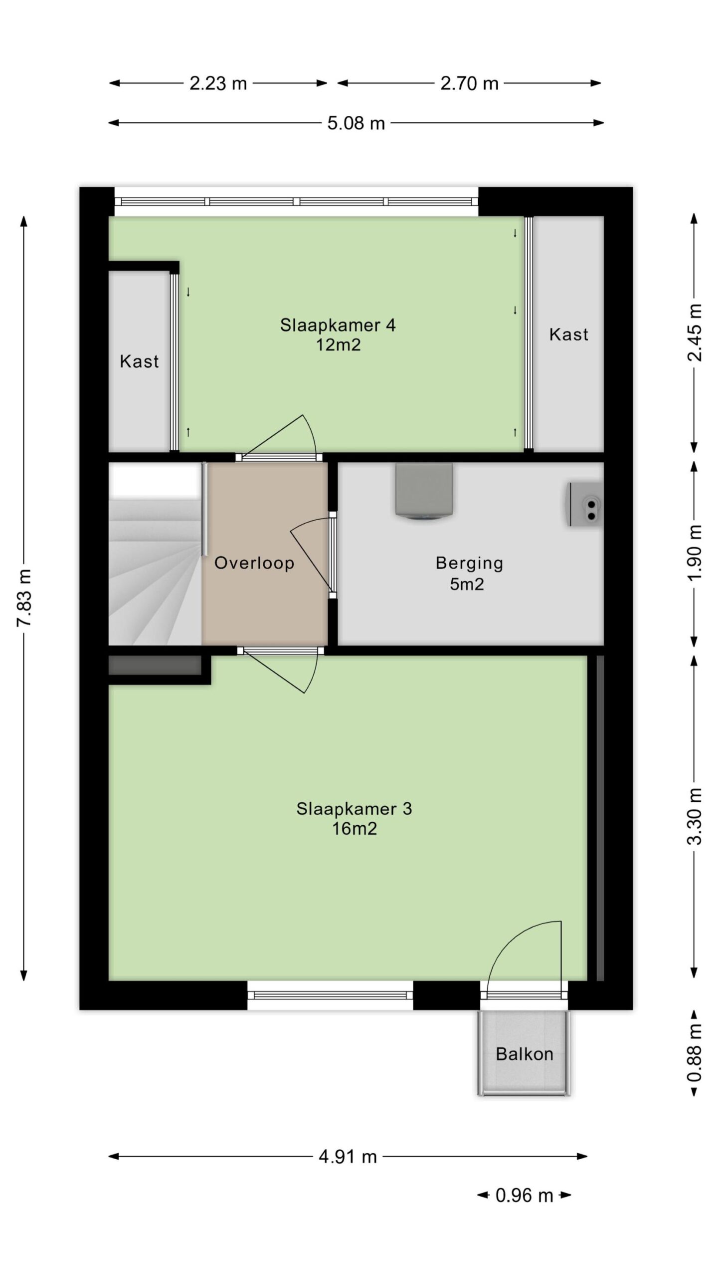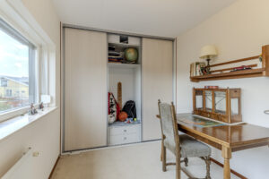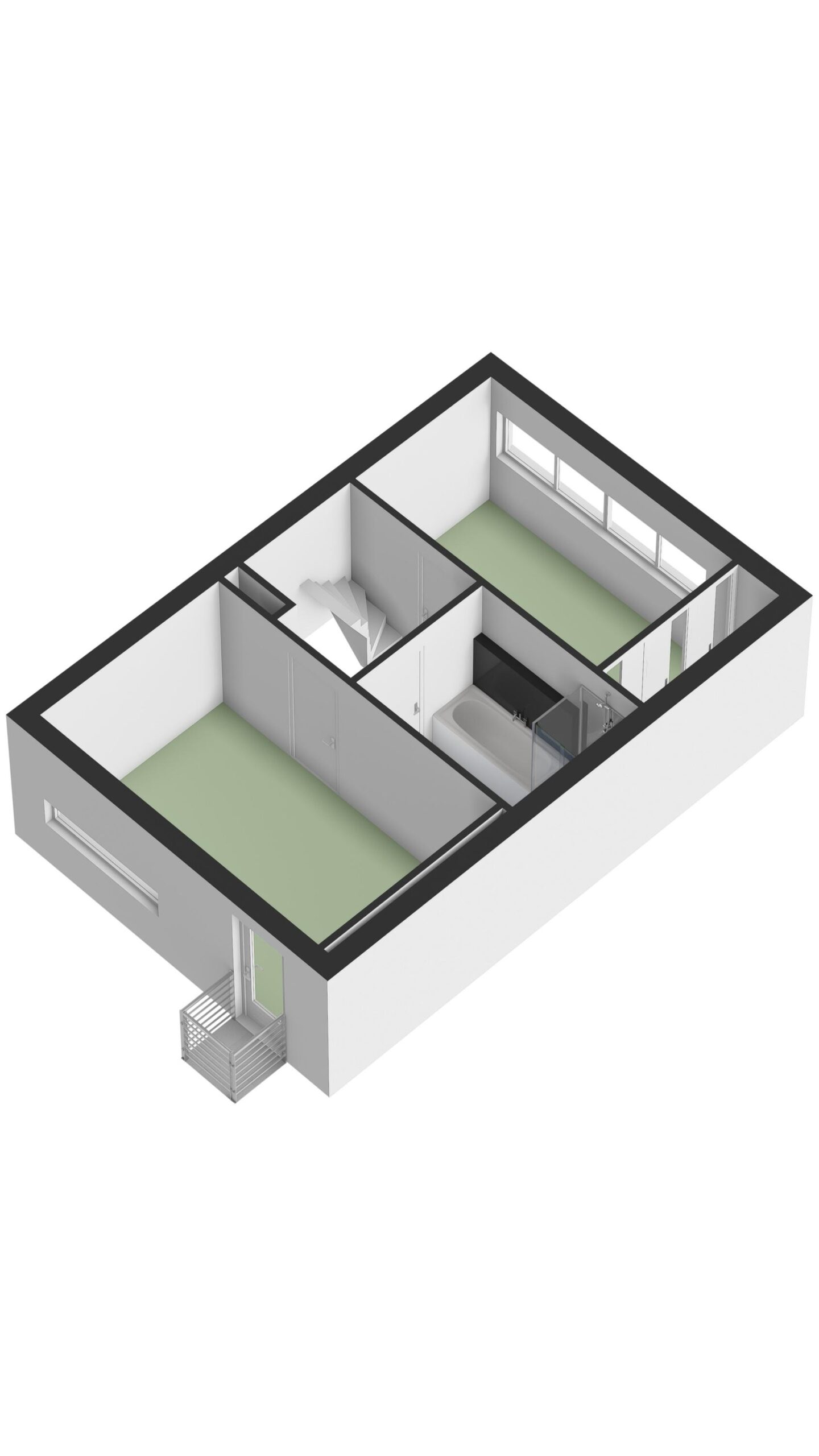 Via een vaste trap is de tweede verdieping te bereiken. De overloop geeft toegang tot twee ruime slaapkamers en een berging/ wasruimte.