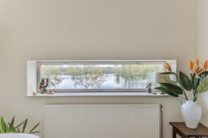 De woning is speels ingedeeld met niveauverschillen op de eerste woonlaag. De ligging aan de rand van Goirle met een panoramisch en vrij uitzicht over water maakt de ligging uniek. Van dit uitzicht geniet u vanuit de keuken met aansluitend een terras, twee balkons en de voorslaapkamers. De woonkamer daarentegen biedt veel privacy met een prachtige plafondhoogte van circa 3.50 meter met volop glaspartijen. Een bijzondere woning dus!