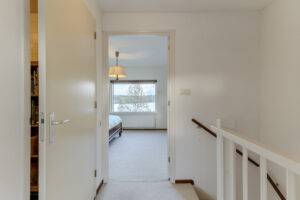 Overloop die toegang geeft tot twee ruime slaapkamers en de badkamer.