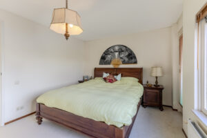 Voorslaapkamer circa 16m² met een deur naar een balkon en een achterslaapkamer circa 12m² met vaste kastenwanden en een rolluik.