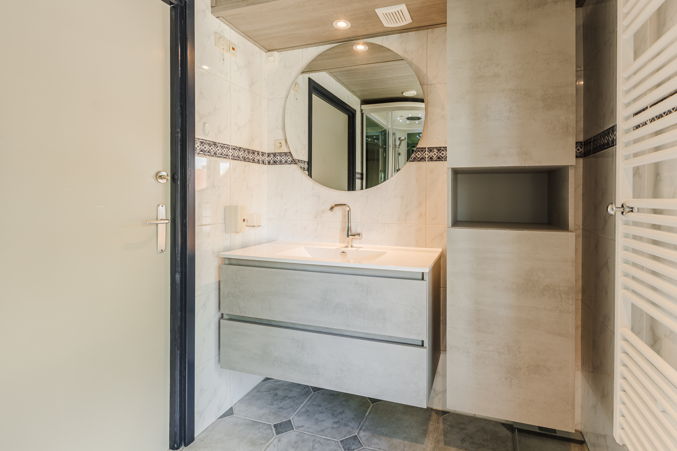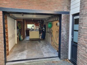 - Garage inpandig bereikbaar en voorzien van een elektrische roldeur met afstandsbediening.