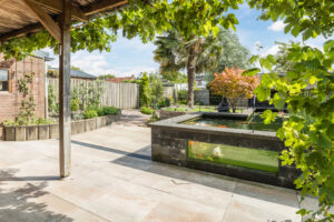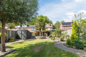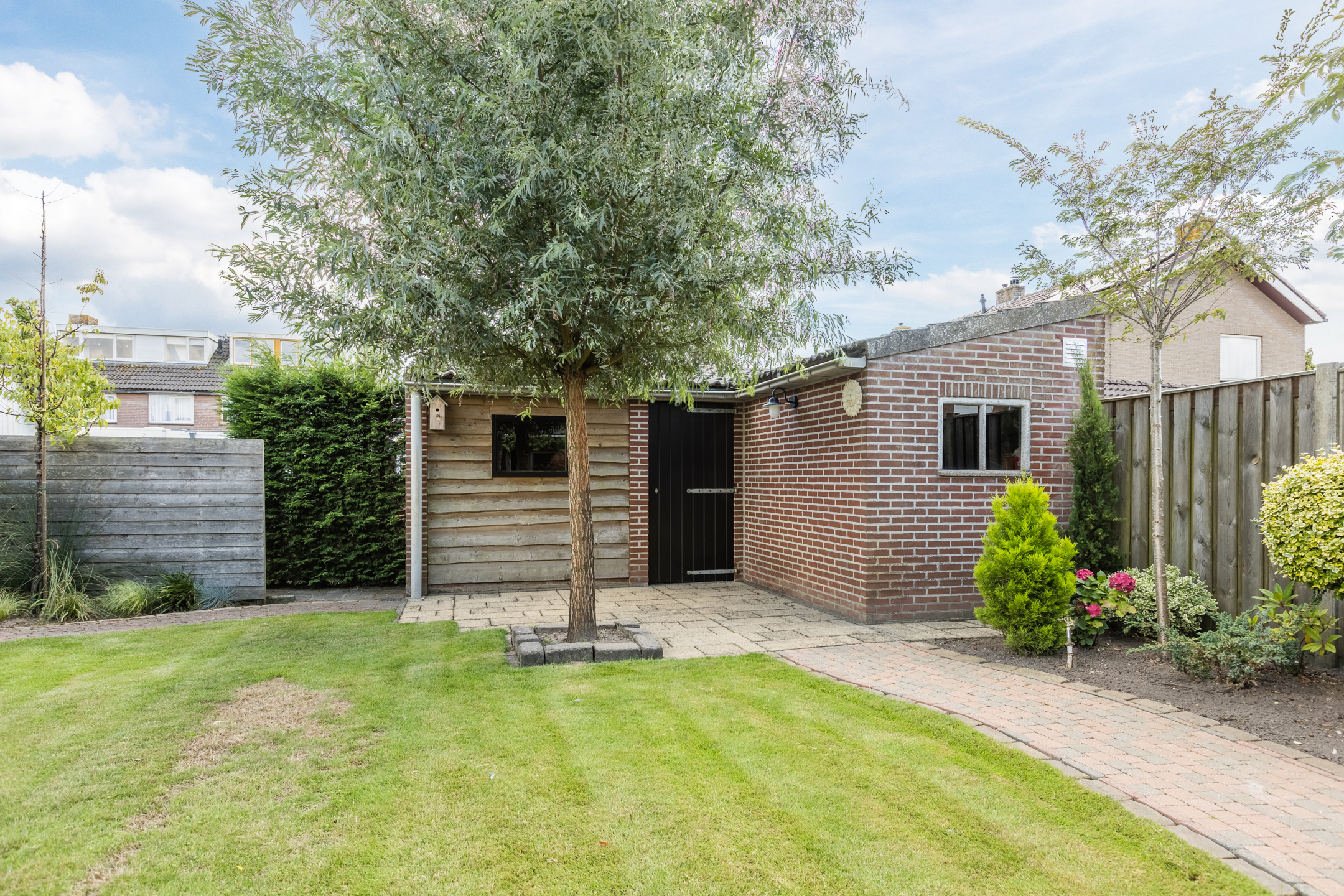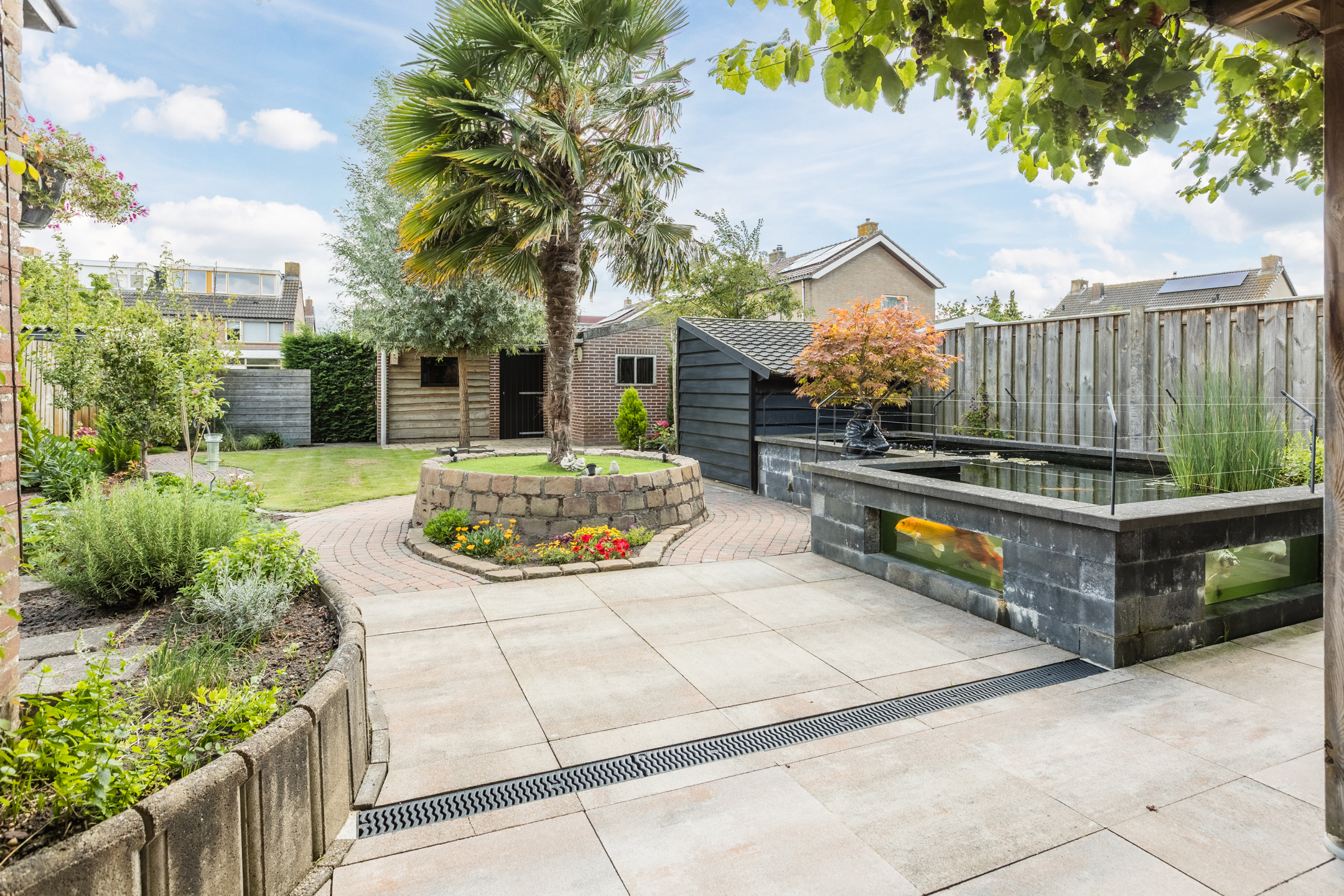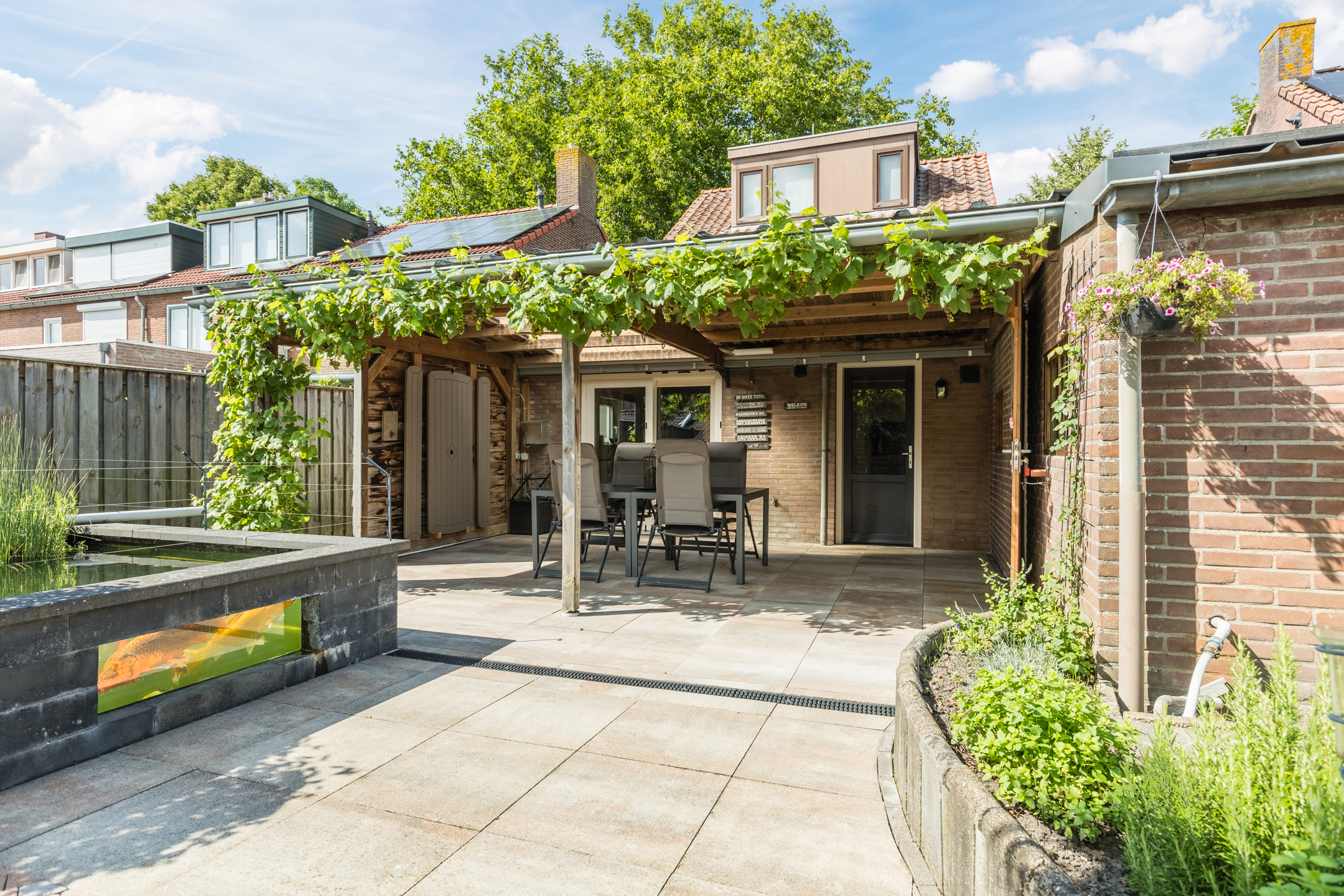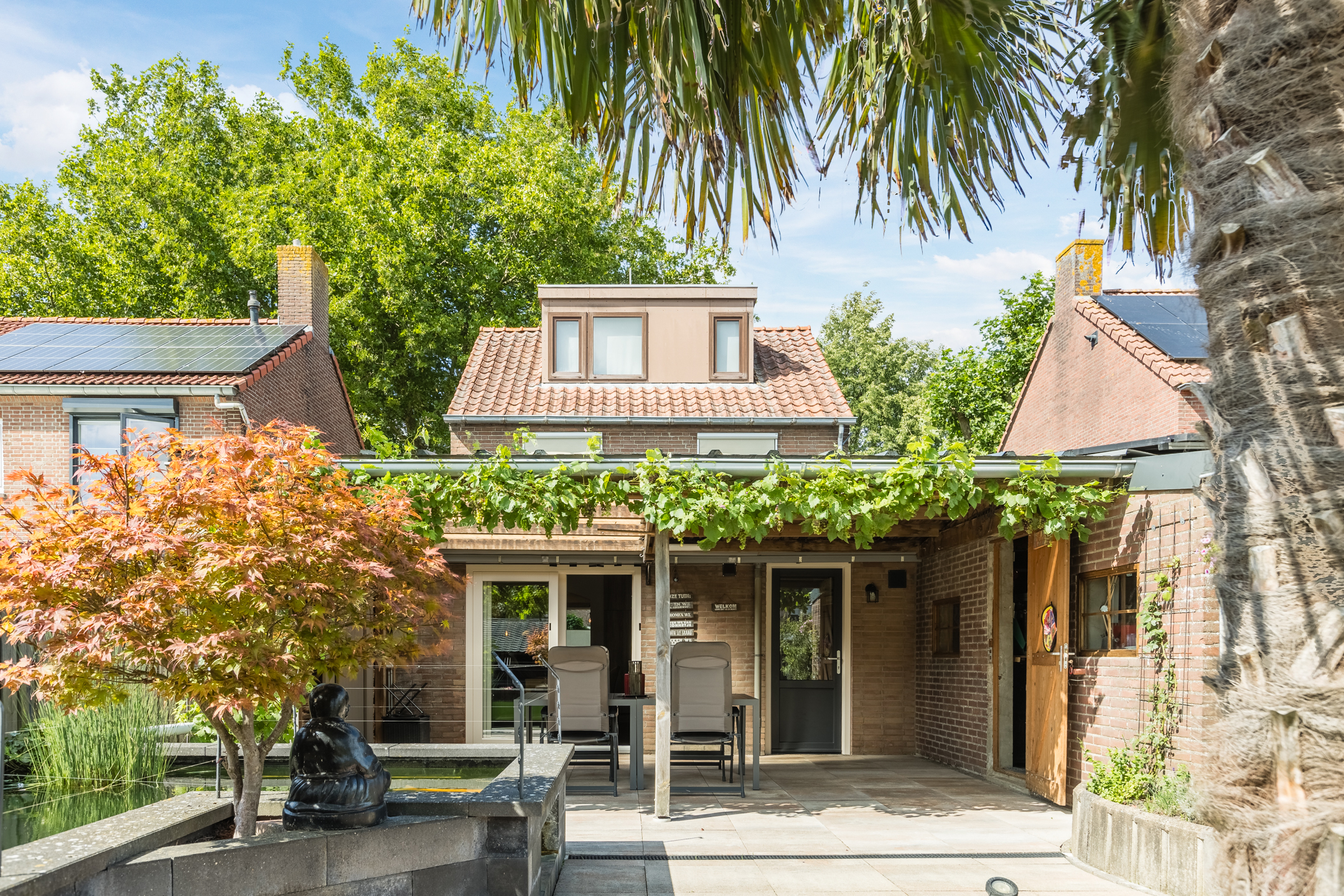 Aan het karakteristieke dorpslint op een mooi perceel van ca. 371m² gelegen, zeer goed onderhouden vrijstaande woning met een inpandig bereikbare garage en twee vrijstaande bergingen. De woning is aan de achterzijde over de volle breedte ca. 5 meter uitgebouwd. De woning is voorzien van een 4-tal slaapkamers, is optimaal geïsoleerd en voorzien van een definitief energielabel A+++. De achtertuin biedt veel privacy en onder het overdekt terras is het heerlijk vertoeven. Vanuit het terras én vanuit de keuken kunt u de vissen zien zwemmen. De tuin is verder ingericht met terrassen in sierbestrating, diverse plantenborders met volwassen beplanting en een gras-gazon.