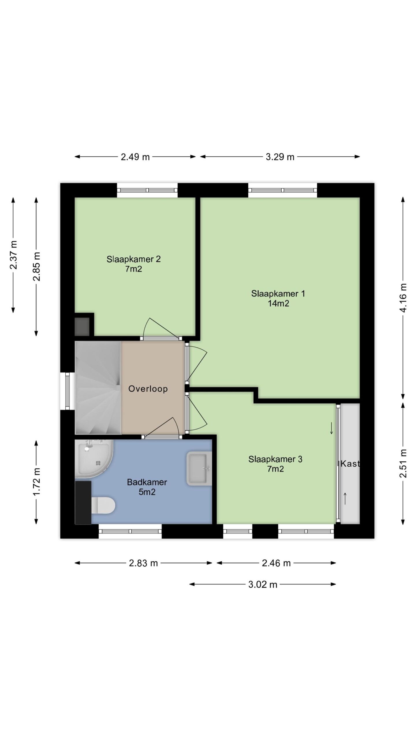 Overloop met vaste trapopgang naar de tweede verdieping. Complete badkamer welke is ingericht met een halfronde douchecabine, vaste wastafel in een wandmeubel, designradiator en een tweede vrijhangend closet. De drie slaapkamers op de eerste verdieping hebben een afmeting van resp. ca. 4.16mx3.29m (hoofd/achterslaapkamer), ca. 2.85x2.49m (achterslaapkamer met laminaatvloer) en ca. 2.51mx2.46m (voor-slaapkamer met laminaatvloer).