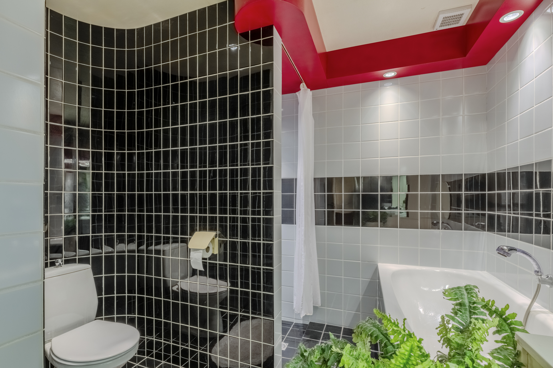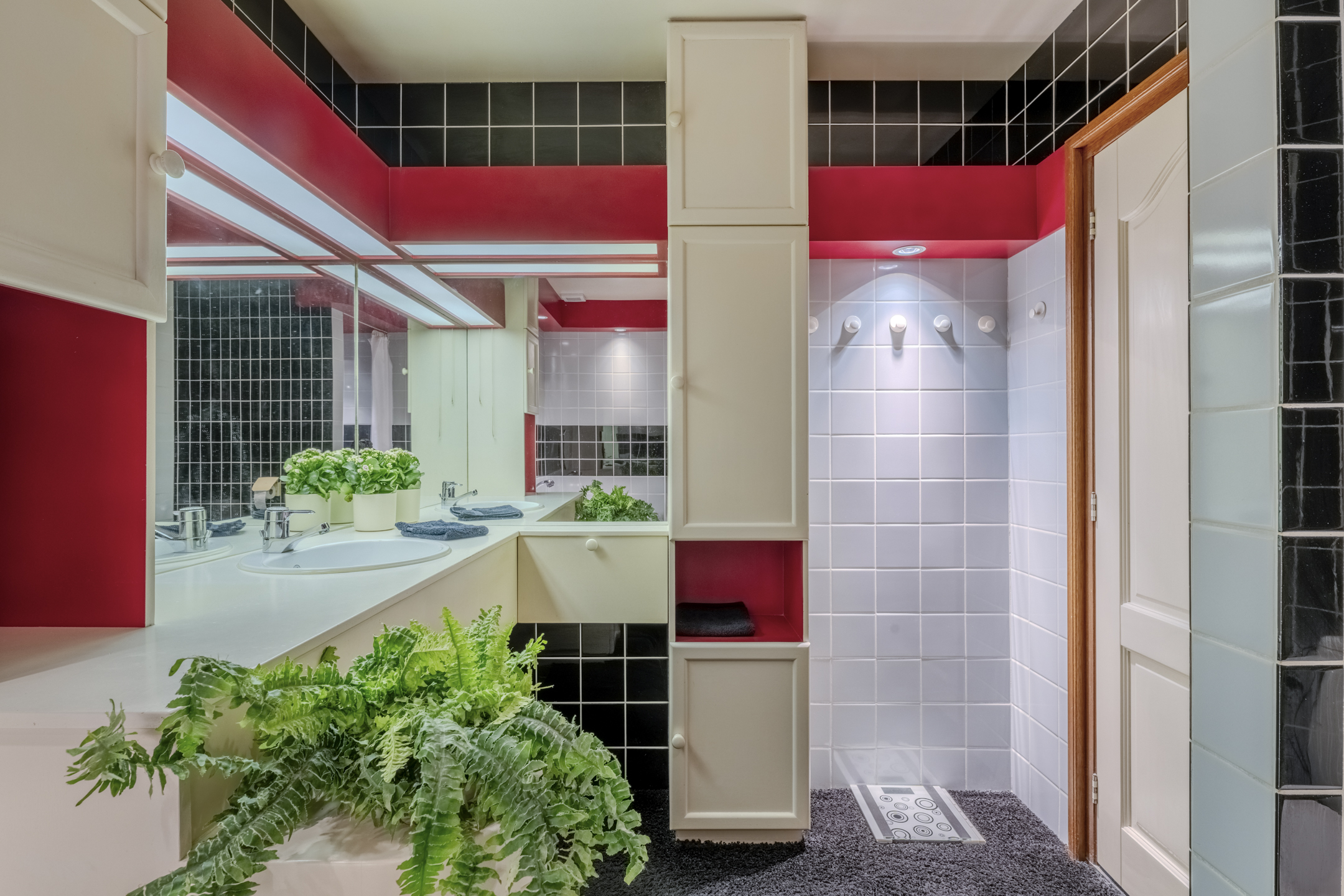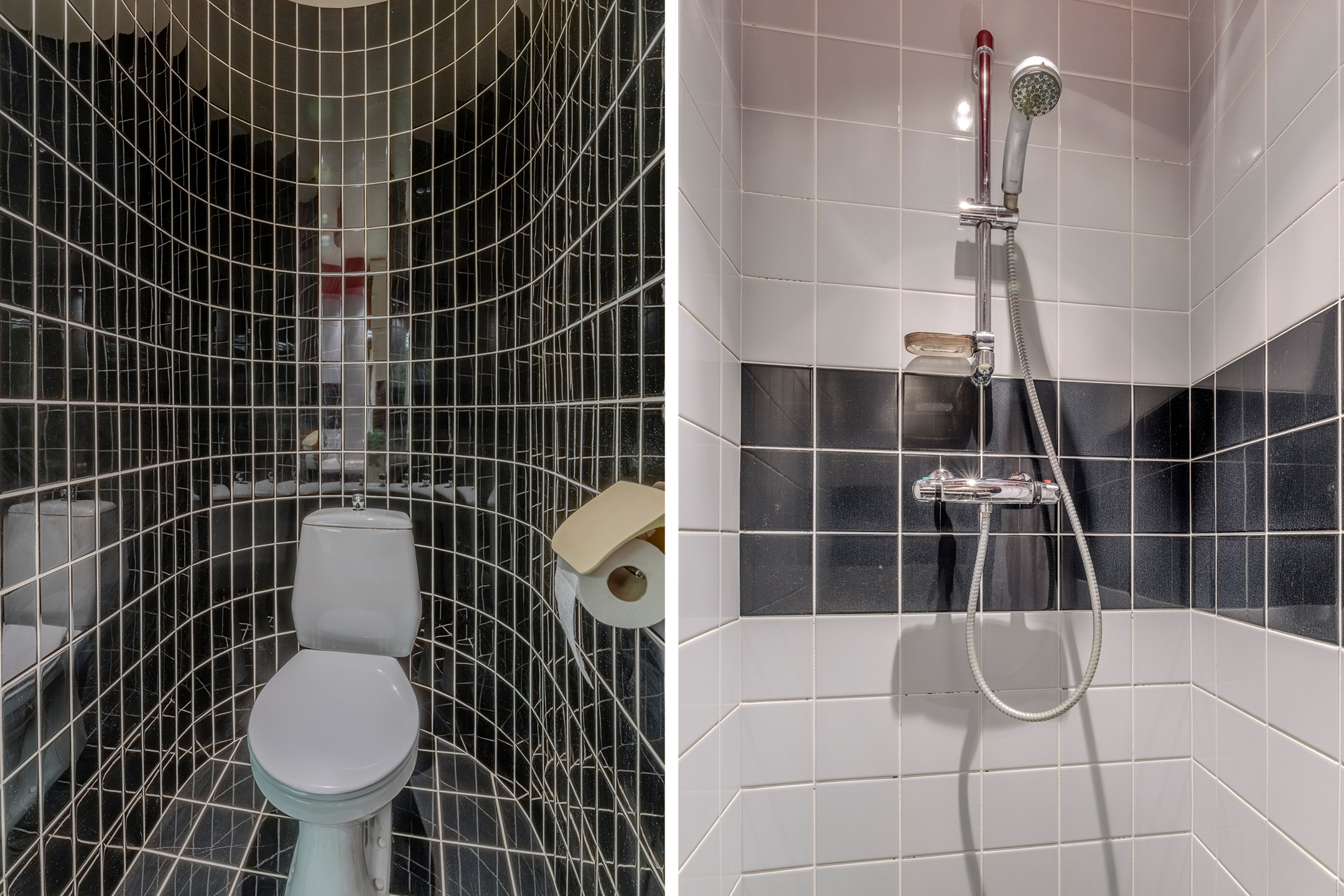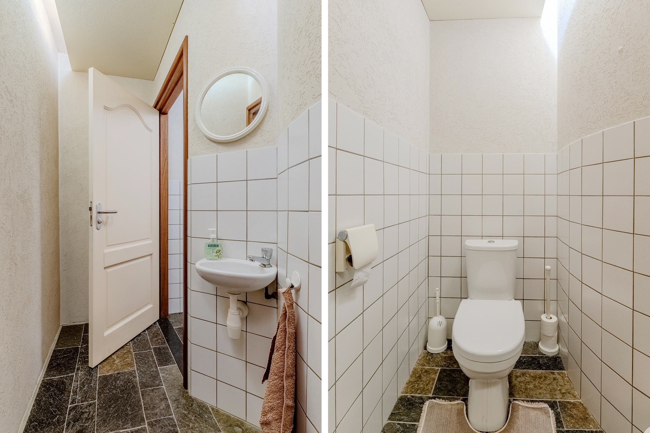 Via een portaal met fontein is er toegang tot een separate toiletruimte.