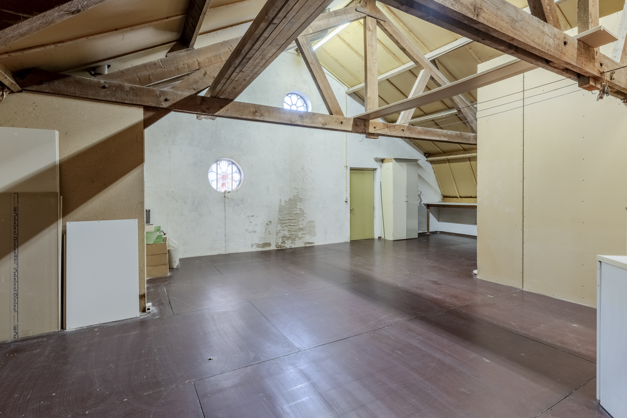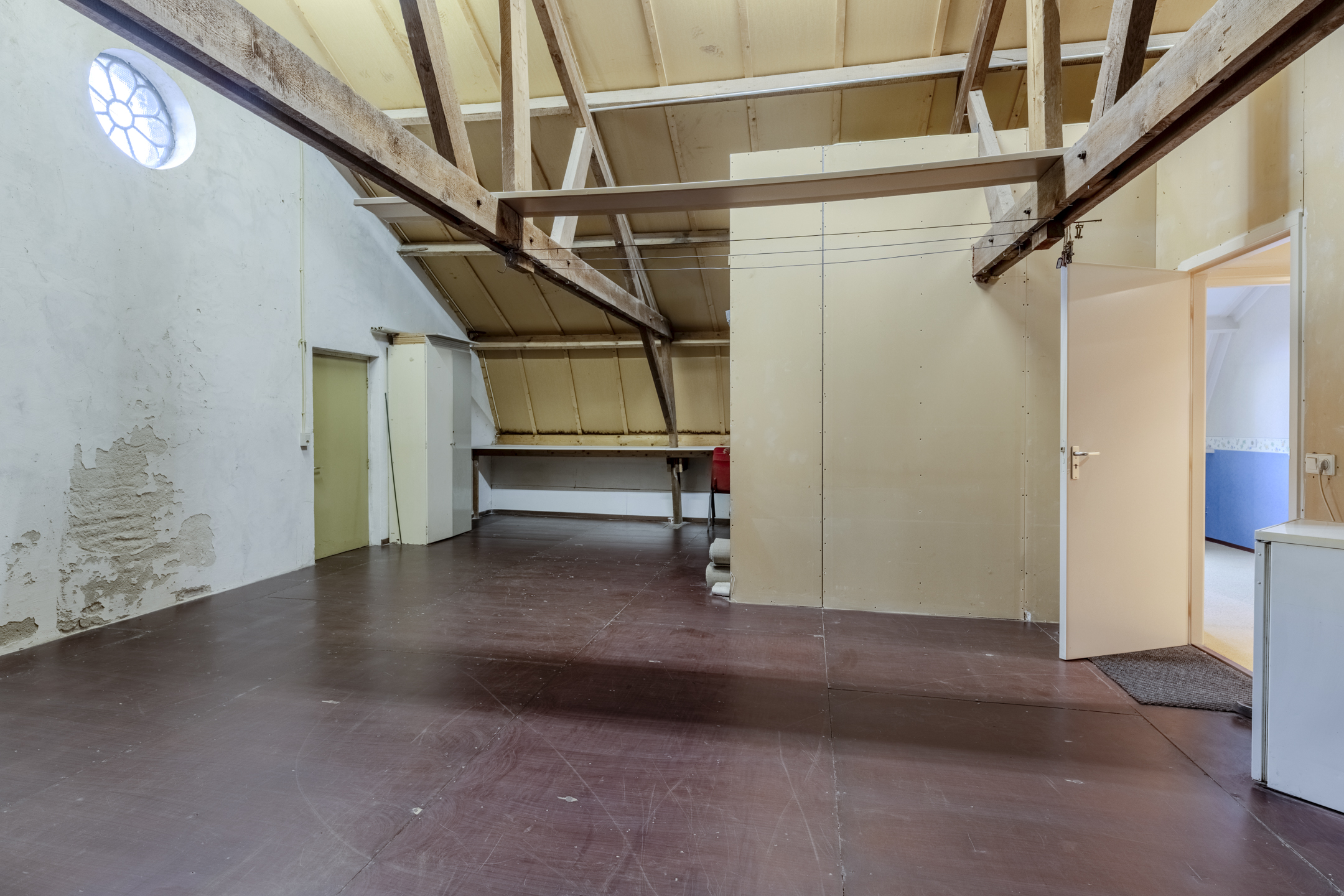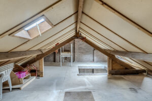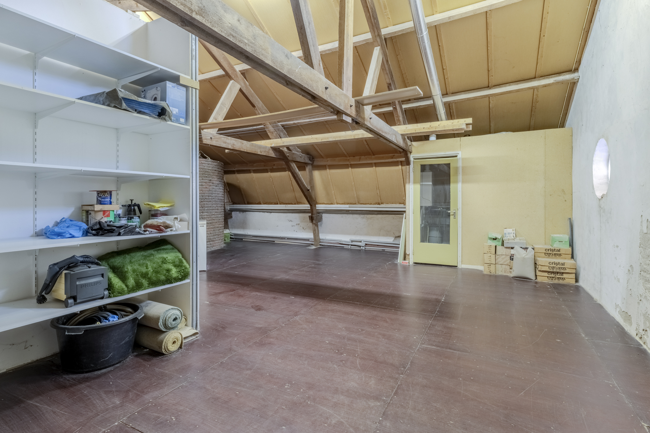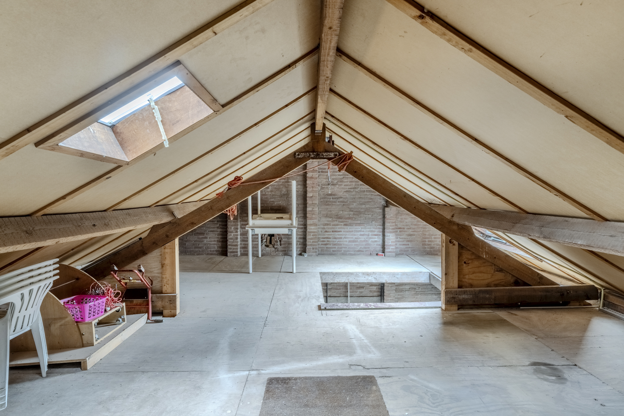 Royale zolderruimte circa 50m² met een vaste kast voorzien van de c.v. combi ketel (Atag, 2024) en de opstelplaats van de hete lucht verwarming. Gezien de grootte van deze zolderruimte kan deze ruimte voor diverse doeleinden gebruikt worden.