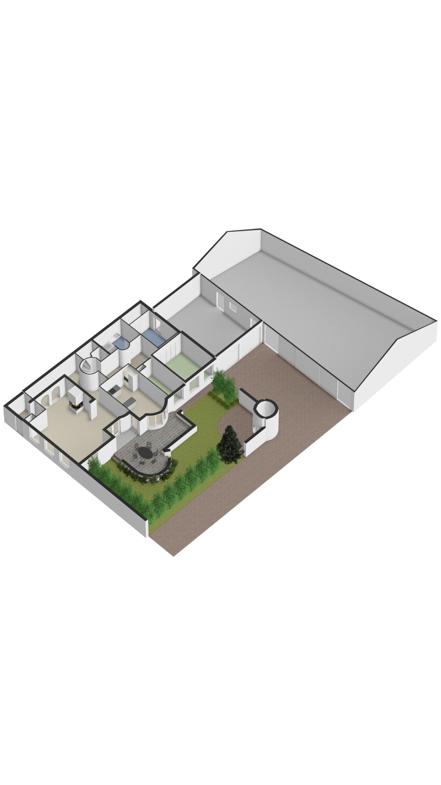 Naast de woning is een eigen, afsluitbare oprit aanwezig die toegang geeft tot de dubbele garage en de achter op het perceel gelegen loods/ multifunctionele ruimte.