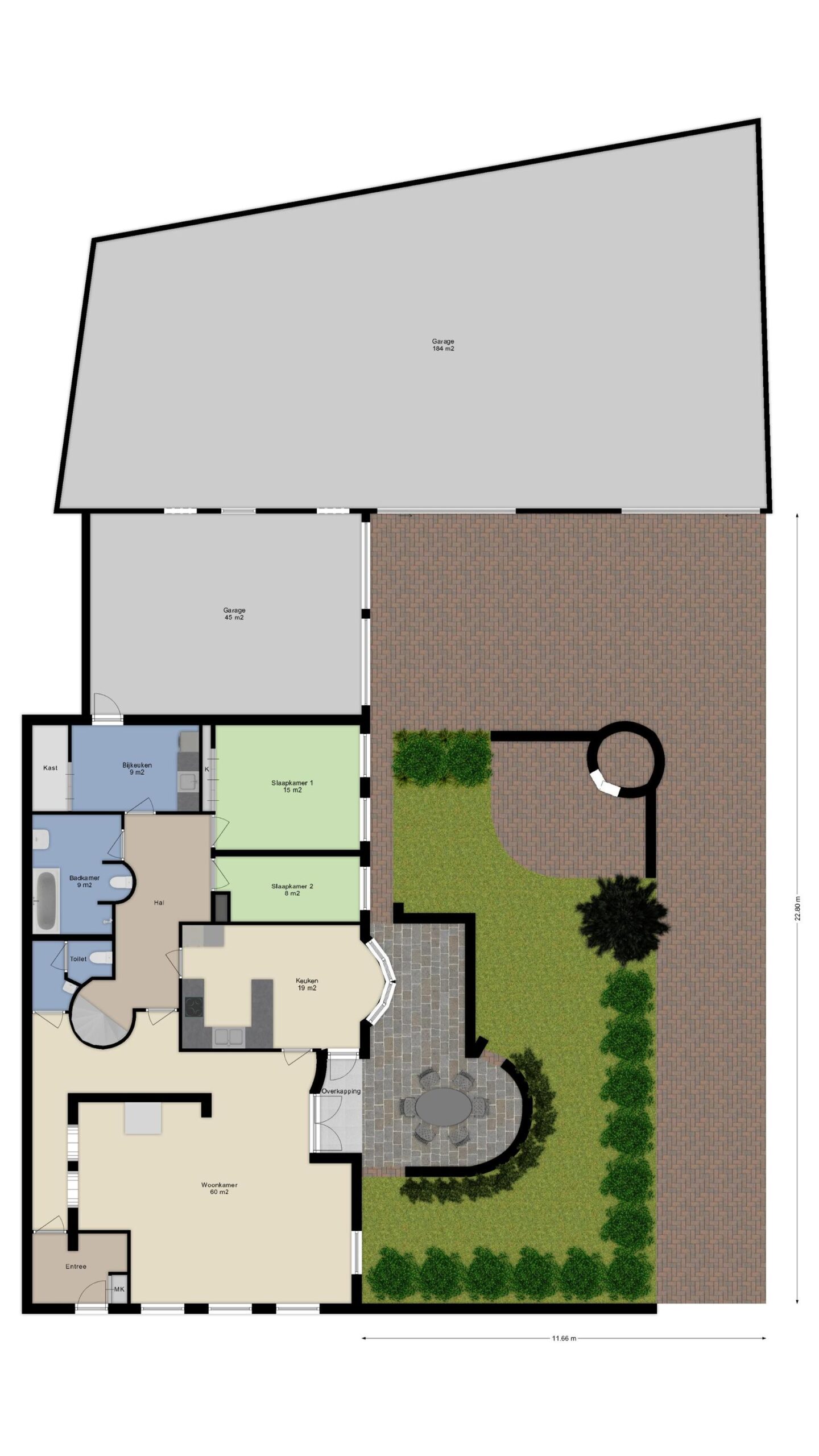 Naast een dubbele garage van circa 45m² (met daarboven een bergzolder) is er achterop het perceel een loods/ multifunctionele ruimte van maar liefst circa 184m², die voor diverse doeleinden gebruikt kan worden.