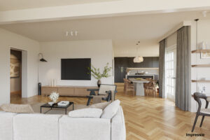 De woning is goed onderhouden maar behoeft modernisering. Om u een idee te geven van de mogelijkheid om de woonkamer te moderniseren en de keuken bij de woonkamer te betrekken én een mogelijkheid van de achtergelegen loods/ multifunctionele hebben wij hiervoor twee impressies toegevoegd.