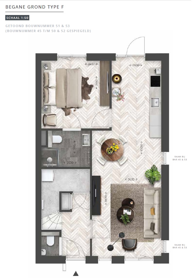 - Volledig woonprogramma (slaap- en badkamer) op de begane grond