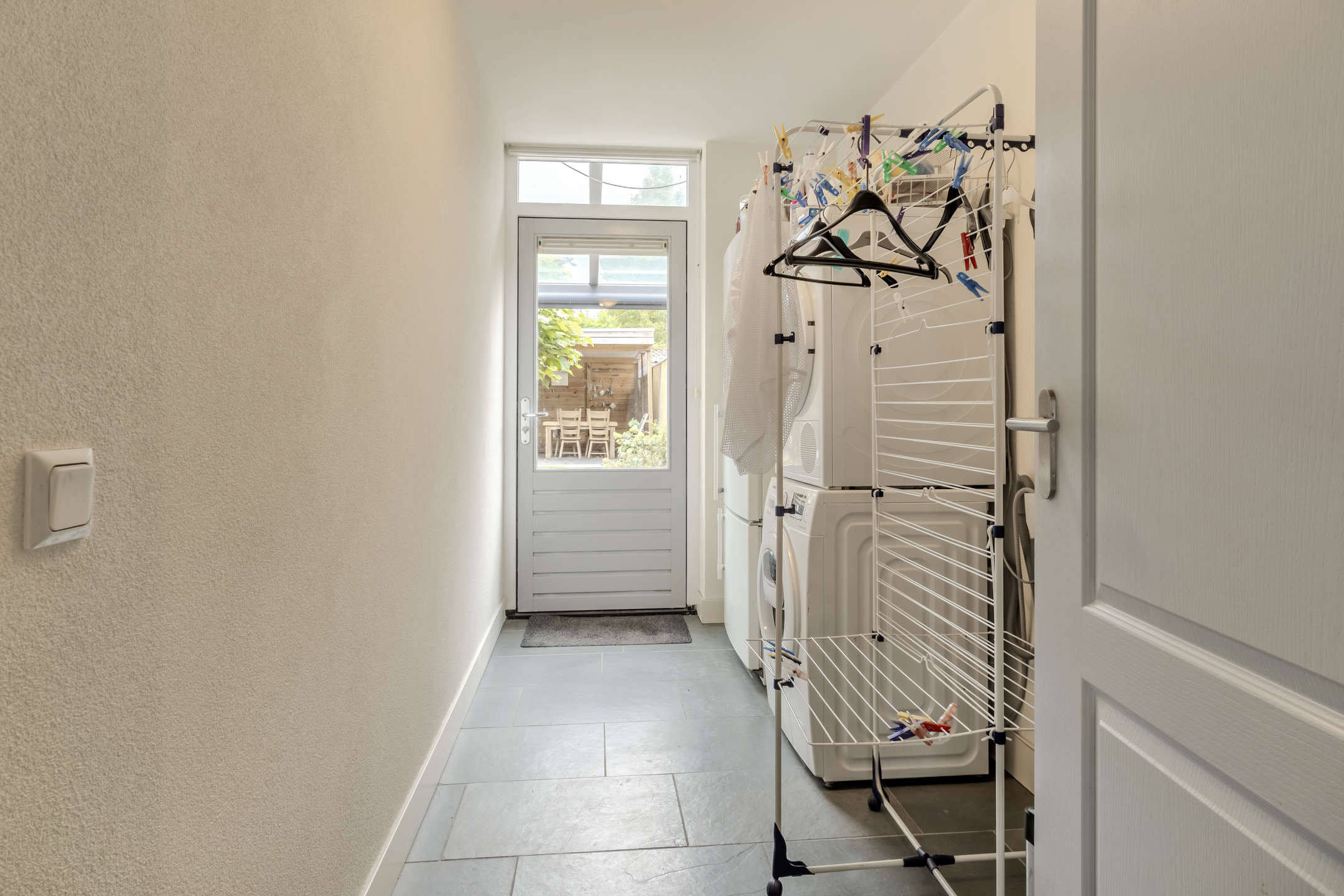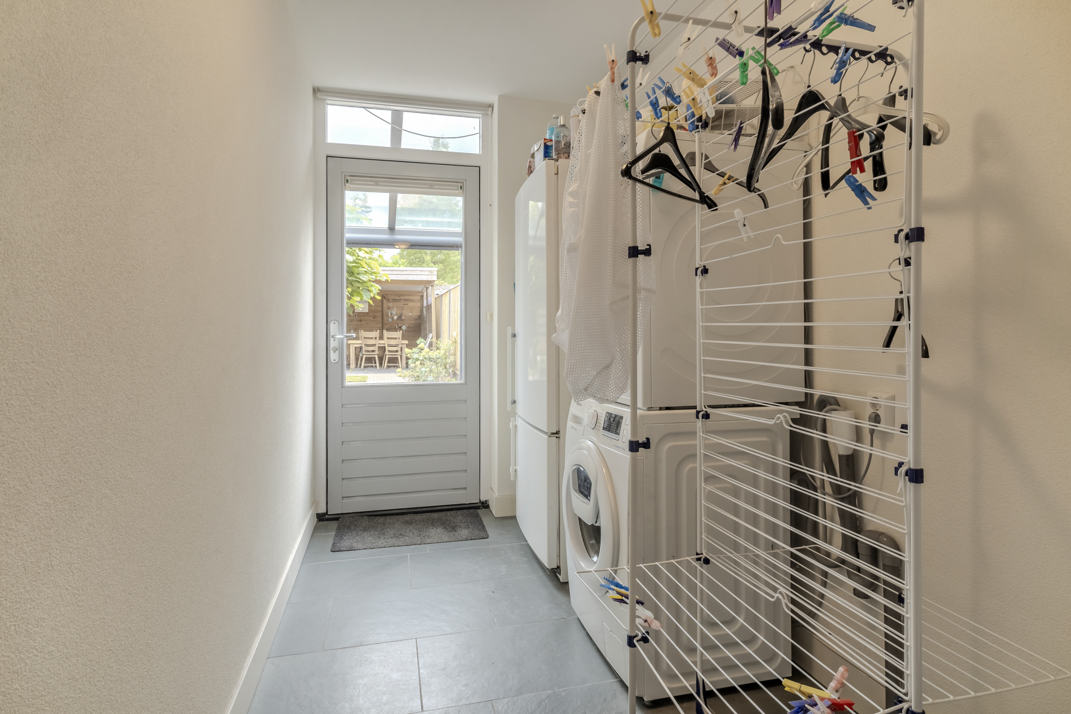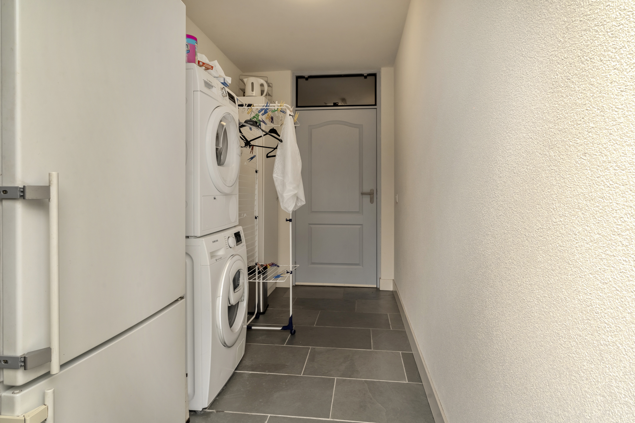 Aansluitend aan de keuken bevindt zich een praktische bijkeuken. Naast extra bergruimte bevinden zich hier de aansluitingen voor de wasapparatuur en een deur naar de achtertuin.