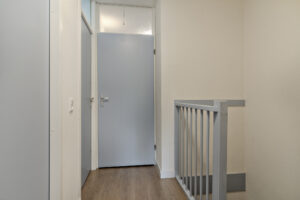 Overloop met PVC vloer (2020) en die toegang geeft tot drie slaapkamers en de badkamer.