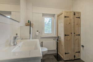 Aansluitend aan de keuken bevindt zich een praktische bijkeuken. Naast extra bergruimte bevinden zich hier de aansluitingen voor de wasapparatuur en een deur naar de achtertuin.