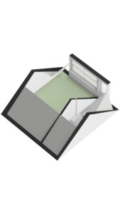 De mogelijkheid bestaat om een vaste trap te plaatsen en op deze verdieping een extra slaapkamer met dakkapel of dakraam te creëren. Om u een idee te geven van deze mogelijkheid hebben wij hiervoor een “optie” tekening toegevoegd.